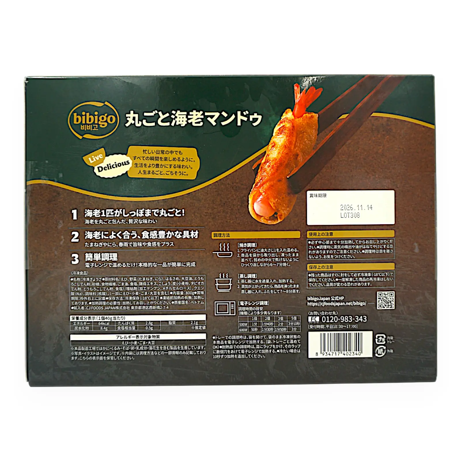 BIBIGO 丸ごと海老マンドゥ 800G