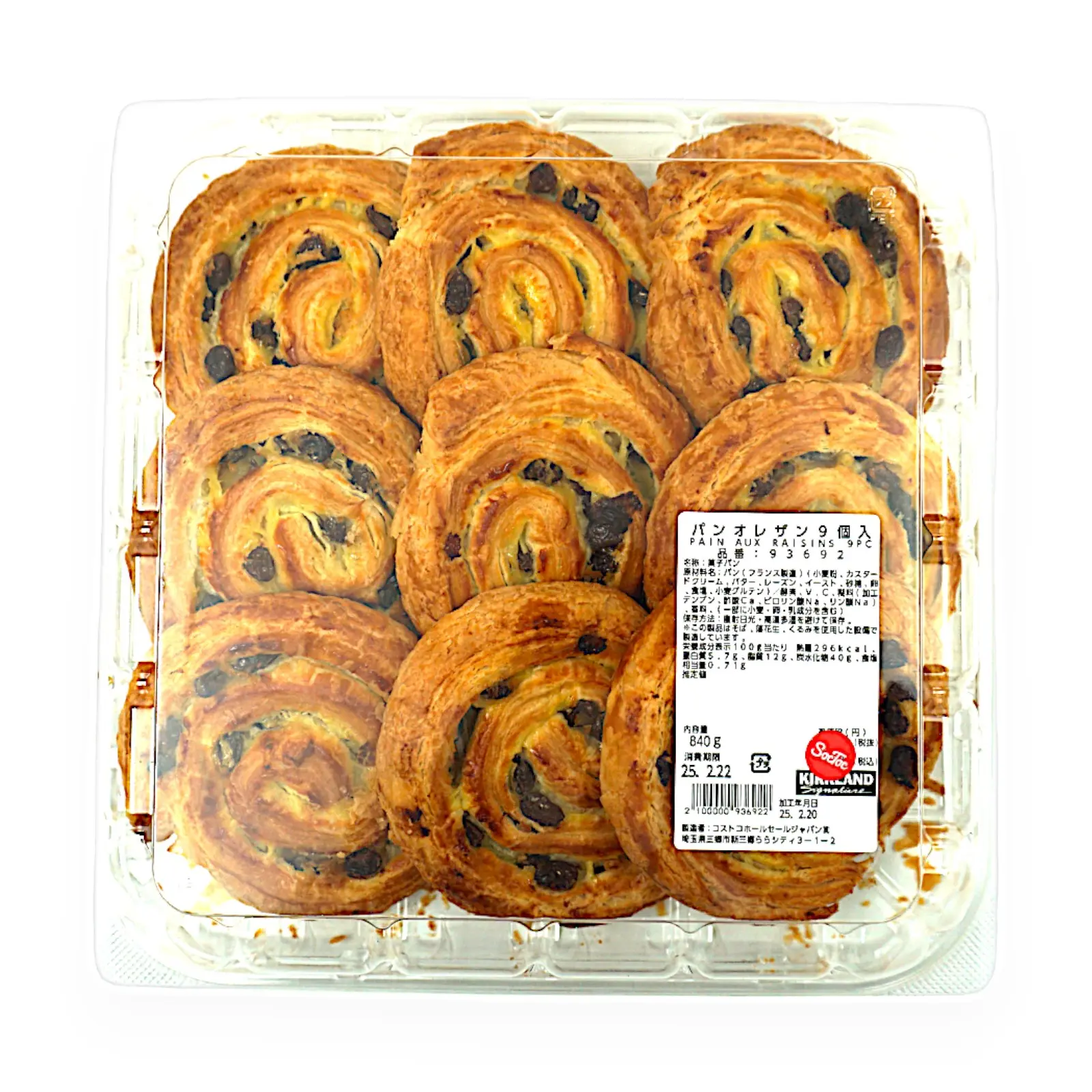 パン(フランス製造)(小麦粉、カスタードクリーム、バター、レーズン、イースト、砂糖、卵、食塩、小麦グルテン)/酵素、V.C、粘料(加工デンプン、酢酸Ca、ピロリン酸Na)、香料、(一部に小麦・卵・乳成分を含む)