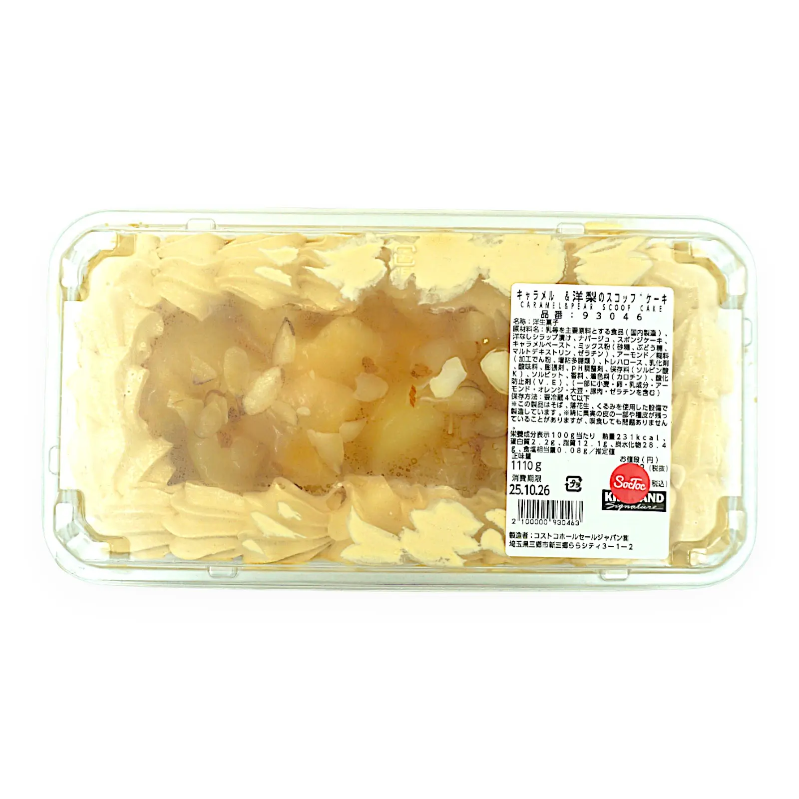 | 原材料名 | 乳等を主要原料とする食品(国内製造)、洋なしシラップ漬け、ナパージュ、スポンジケーキ、キャラメルペースト、ミックス粉(砂糖、ぶどう糖、マルトデキストリン、ゼラチン)、アーモンド/糊料(加工でん粉、増粘多糖類)、トレハロース、乳化剤、酸味料、膨張剤、PH調整剤、保存料(ソルビン酸K)、ソルビット、香料、着色料(カロチン)、酸化防止剤(V.E)、(一部に小麦・卵・乳成分・アーモンド・オレンジ・大豆・豚肉・ゼラチンを含む) |