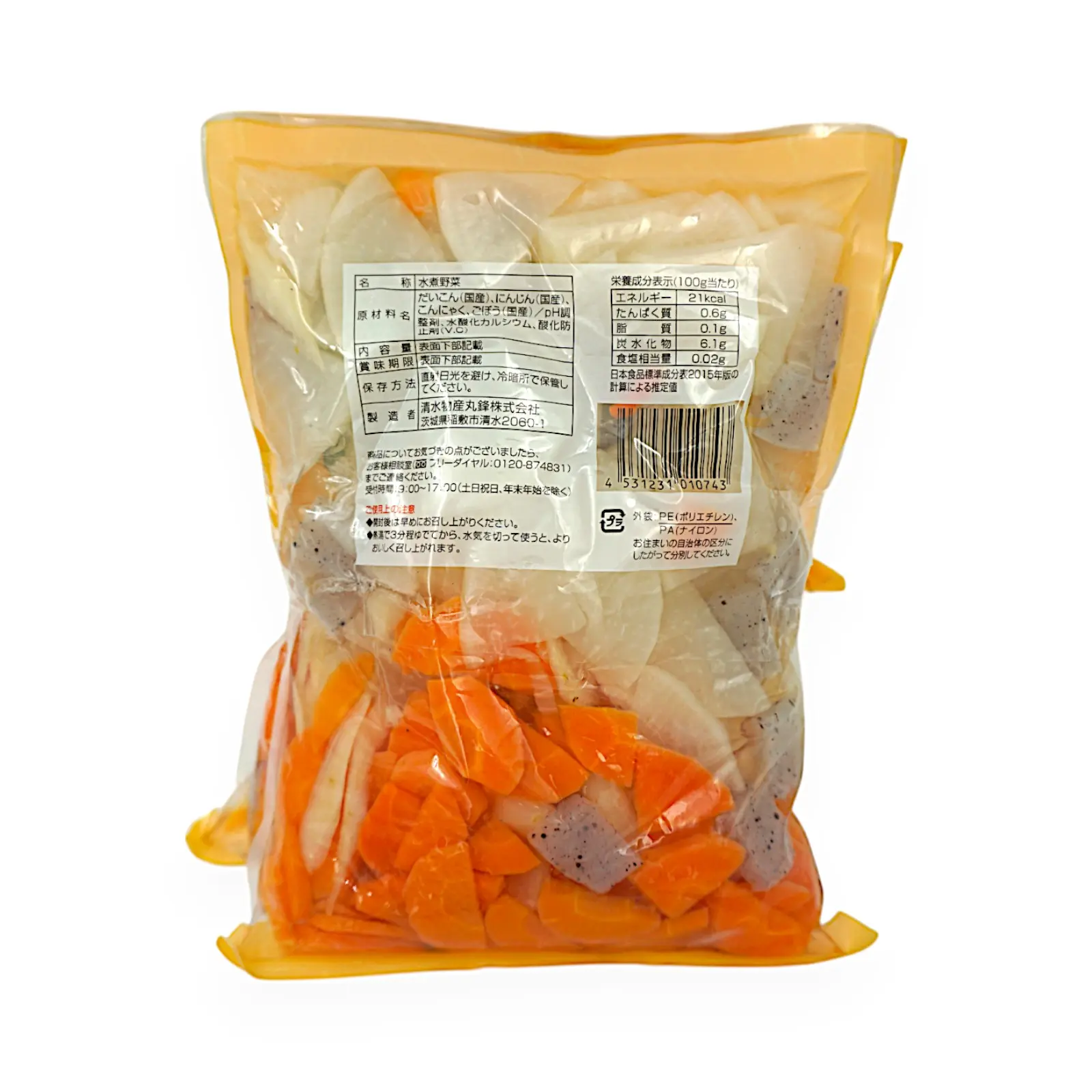 だいこん(国産)、にんじん(国産)、こんにゃく、ごぼう(国産)/pH調整剤、水酸化カルシウム、酸化防止剤(V.C)