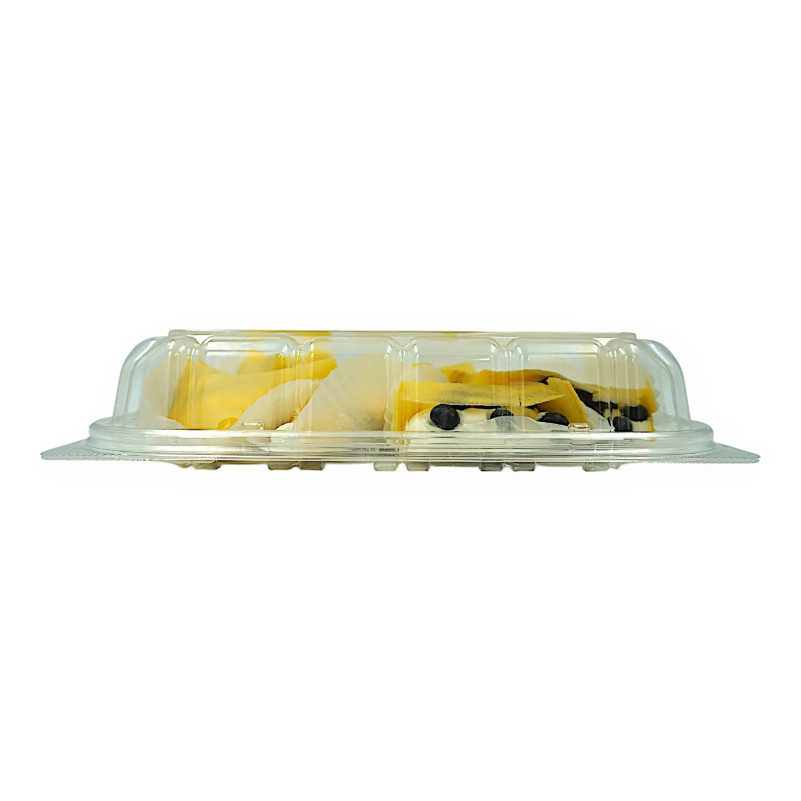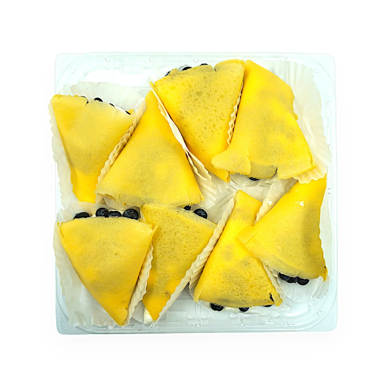 | 原材料名 | クレープシート(国内製造)(加工液卵、米粉ミックス粉、マーガリン、砂糖、有機豆乳、食塩)、ブルーベリー(メキシコ産)、乳等を主要原料とする食品(植物油脂、乳製品)、ブルーベリーフィリング(ブルーベリー、砂糖、水あめ)、ナチュラルチーズ(デキストリン)、砂糖/糊料(加工デンプン、増粘多糖類)、乳化剤、酸味料、pH調整剤、香料、膨張剤、d-酒石酸水素カリウム、(一部に小麦・卵・乳成分・オレンジ・大豆を含む) |