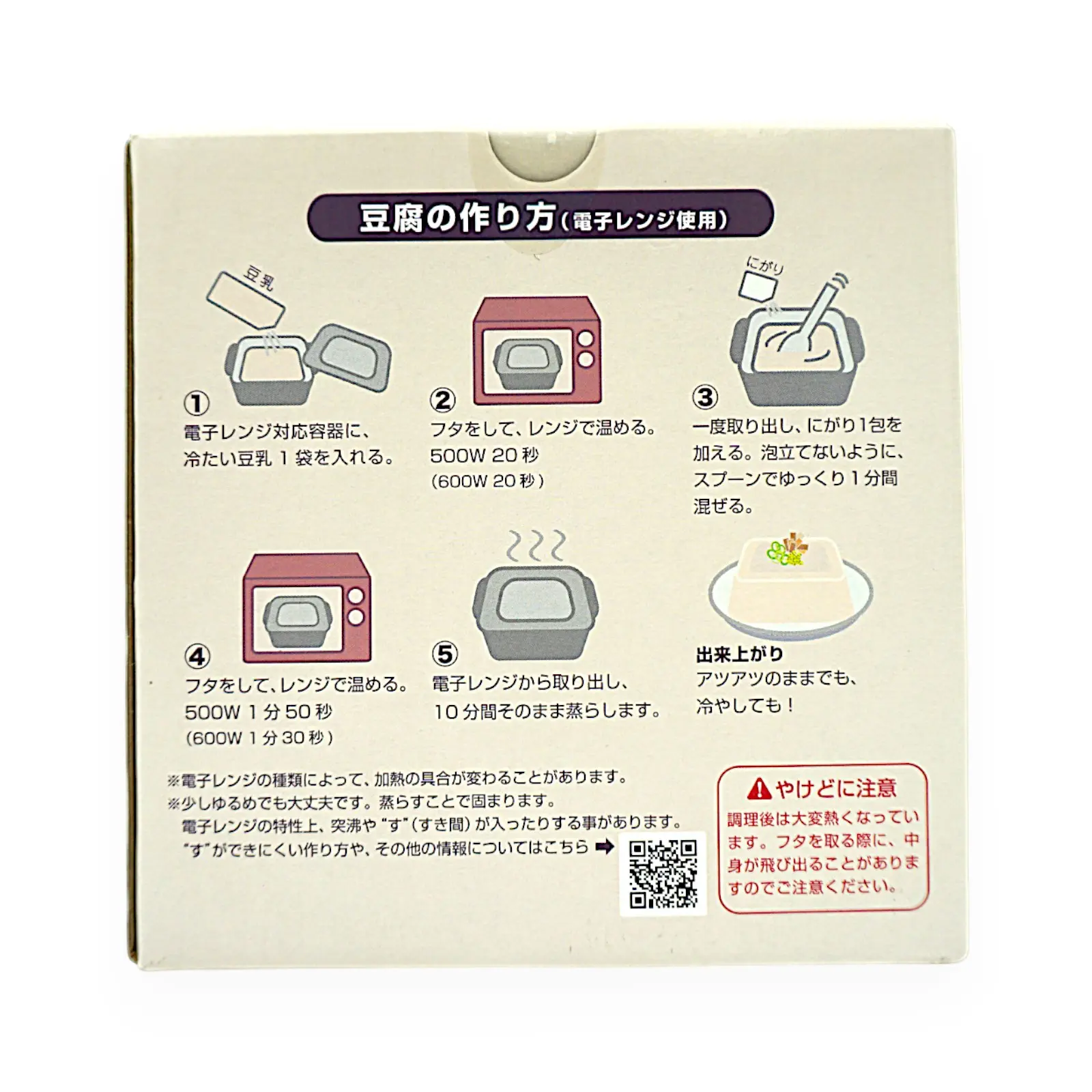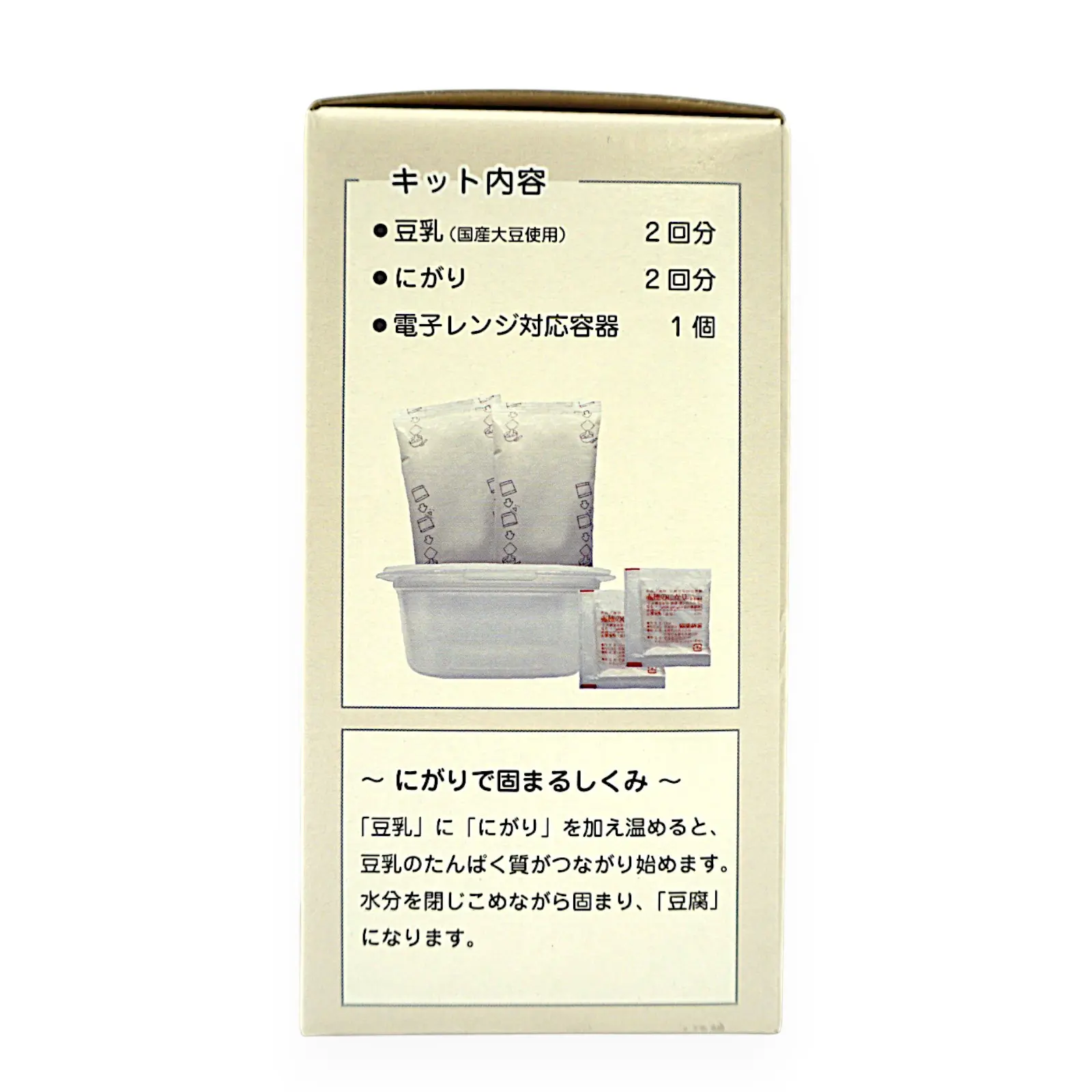 豆乳とにがり、レンジ対応容器がセットになっています。大豆の豊かな風味と甘みが口いっぱいに広がります。