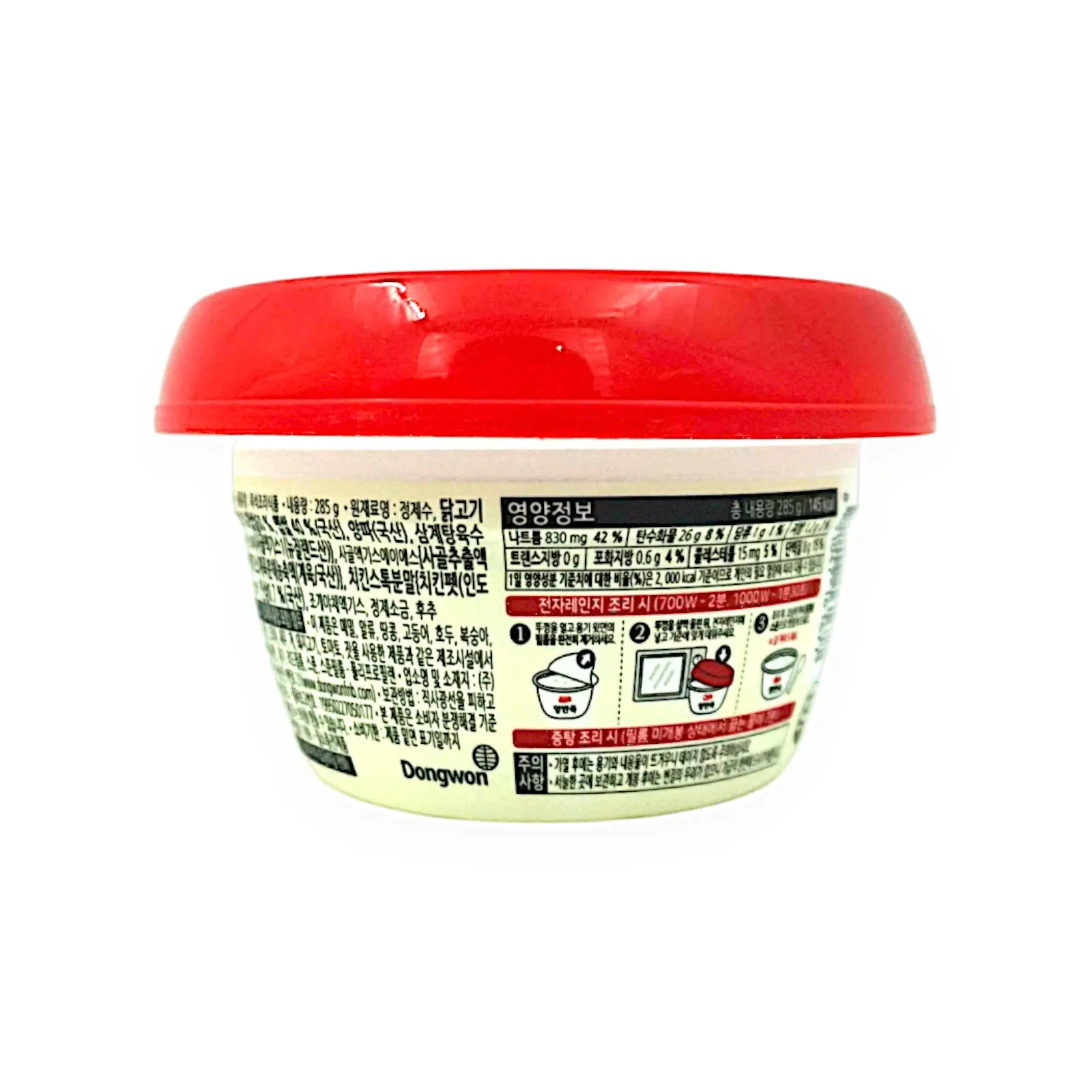 | 原材料名 | 鶏肉、米(韓国産)、玉ねぎ、チキンドキス加工品(デキストリン、牛骨エキス、鶏エキス、植物性クリーム、食塩、チキン調味粉末、その他)、にんじん、ズッキーニ、貝野菜エキス、高麗人参、食塩、胡椒ミックス/加工デンプン、調味料(アミノ酸等)、香料、ソルビトール、香辛料抽出物、V.C、着色料(カラメル)、プロピレングリコール、クエン酸、(一部に小麦・乳成分・牛肉・大豆・鶏肉・ゼラチンを含む) |