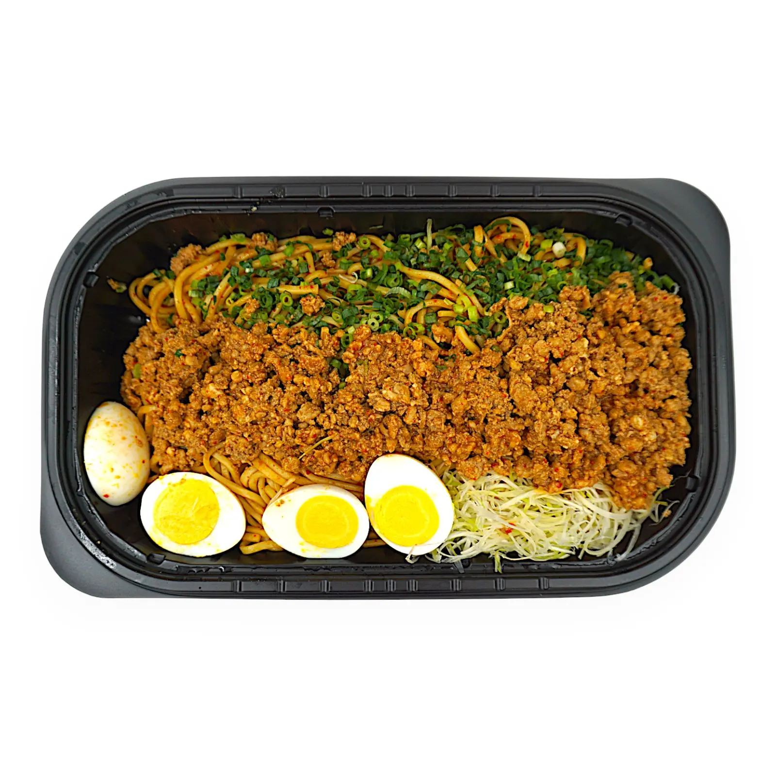 | 原材料名 | 麵(国内製造)、食肉製品(豚肉、醤油調味料、食塩、香辛料、卵白粉末)、ソース(植物油脂、醤油、砂糖混合異性化液糖、食塩、ポークエキス、チキンエキス、シーズニング、にんにく、香辛料、煮干イワシ粉末、かつお節粉末、酵母エキス、生姜、昆布エキス、たん白自己消化物、醸造酢、さば節粉末)、ゆで卵、長葱、青葱/かんすい、増粘剤(加工でん粉、キサンタン)、pH調整剤、着色料(クチナシ)、グリシン、香辛料抽出物、セルロース、カセイソーダ、(一部にえび・小麦・卵・乳成分・ごま・さば・大豆・鶏肉・豚肉・ゼラチンを含む) |