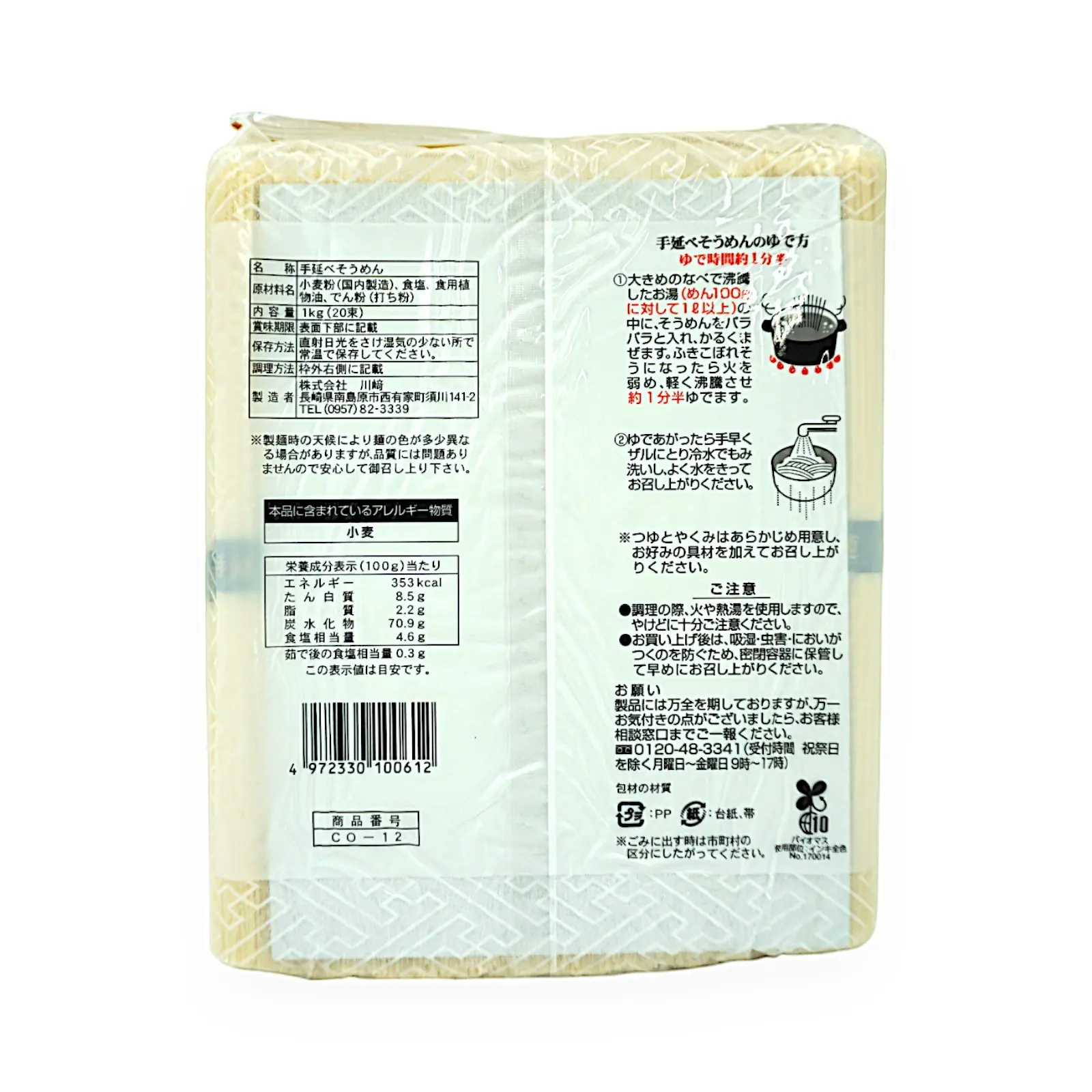※こちらは小分け商品です※そうめんトップブランドの一つ、島原手延べそうめんの1kg(20束)です。滑らかな舌触りにくわえてコシが強い特徴があり、汁物として炊き上げても煮崩れせず仕上がります。