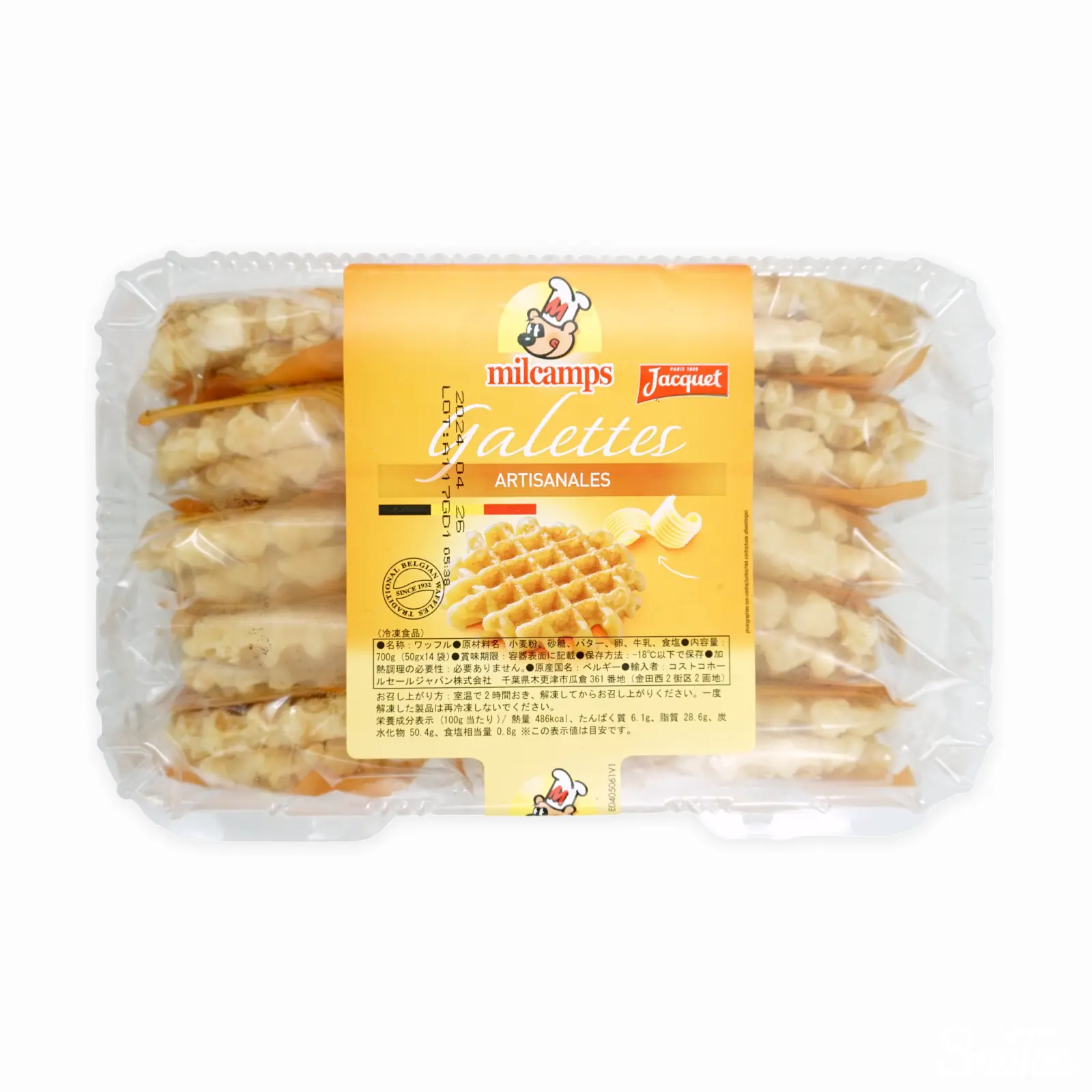 ベルギーのバターワッフルです。冷凍保存されている個包装のワッフルが14個入ったセットになります。自然解凍されるか、または軽くトースター等で炙ってお召し上がりください。