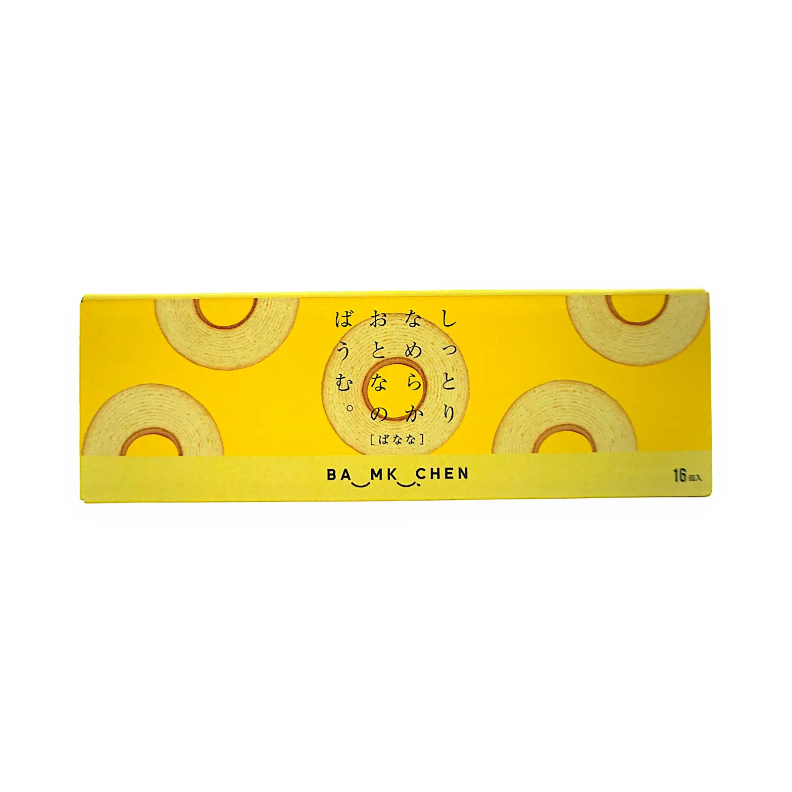 人気商品のおとなのばうむ、バナナフレーバーの16個入りです。しっとりとして優しい甘さのバームクーヘンです。