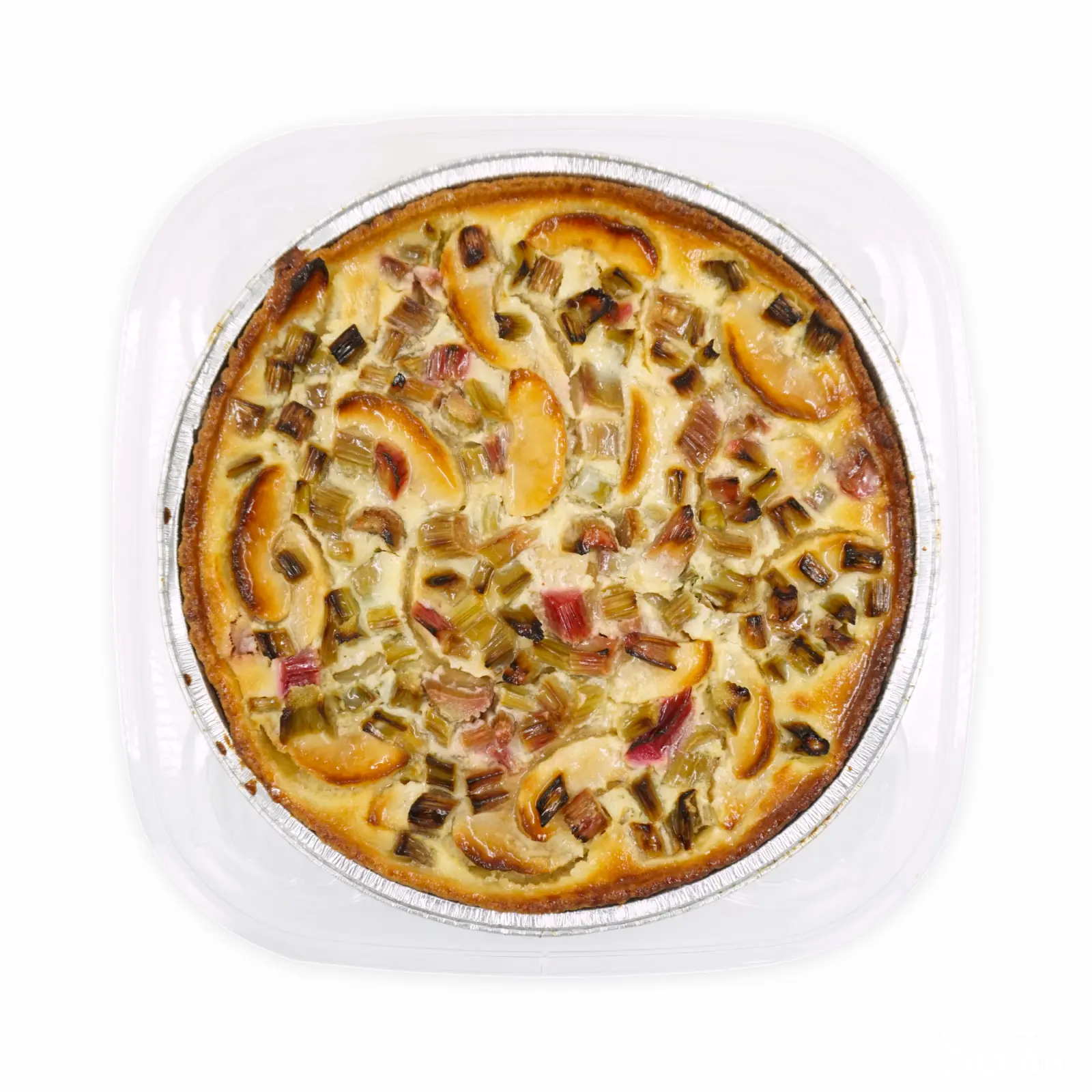 ベーカリーコーナーより、直径30cmほどあるりんごとルバーブのタルトです。ルバーブは蓼科の食材で、酸味のある杏に近く、全体的に甘酸っぱい仕上がりのタルトとなっています。