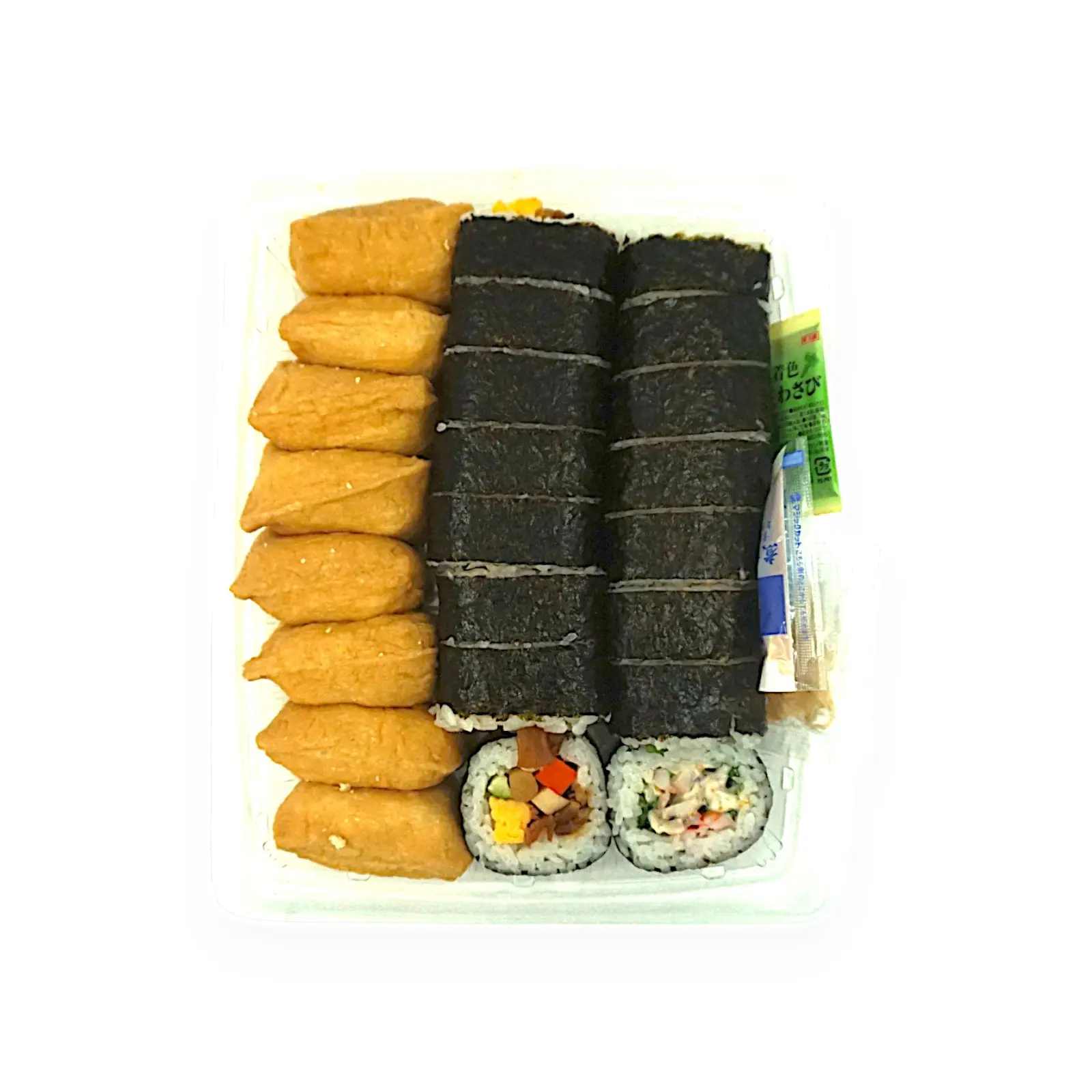いなり寿司・シーフードサラダ巻き・田舎巻きのセットです。※本商品は消費期限が当日のため、午後の配送でのみお届けいたします。