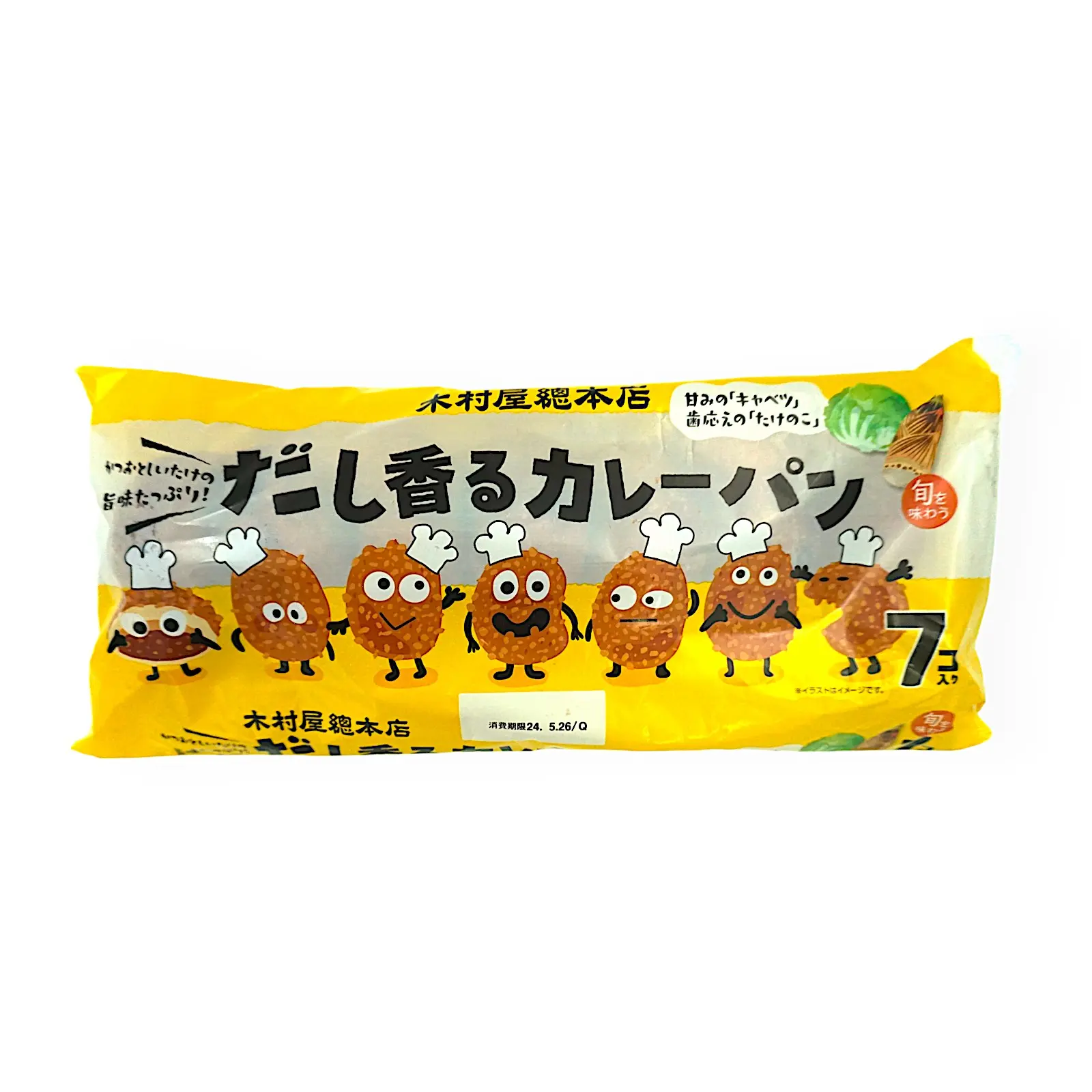 | 原材料名 | カレーフィリング(キャベツ、たけのこ、砂糖、カレー粉、その他)(国内製造)、小麦粉、ショートニング、パン粉、砂糖、卵、マーガリン、パン酵母、乳等を主要原料とする食品、食塩/加工デンプン、調味料(アミノ酸等)、pH調整剤、ベーキングパウダー、乳化剤、酢酸Na、増粘剤(HPMC、キサンタン)、酸化防止剤(ビタミンE)、香料、カロチン色素、(一部に小麦・卵・乳成分・大豆・豚肉を含む) |