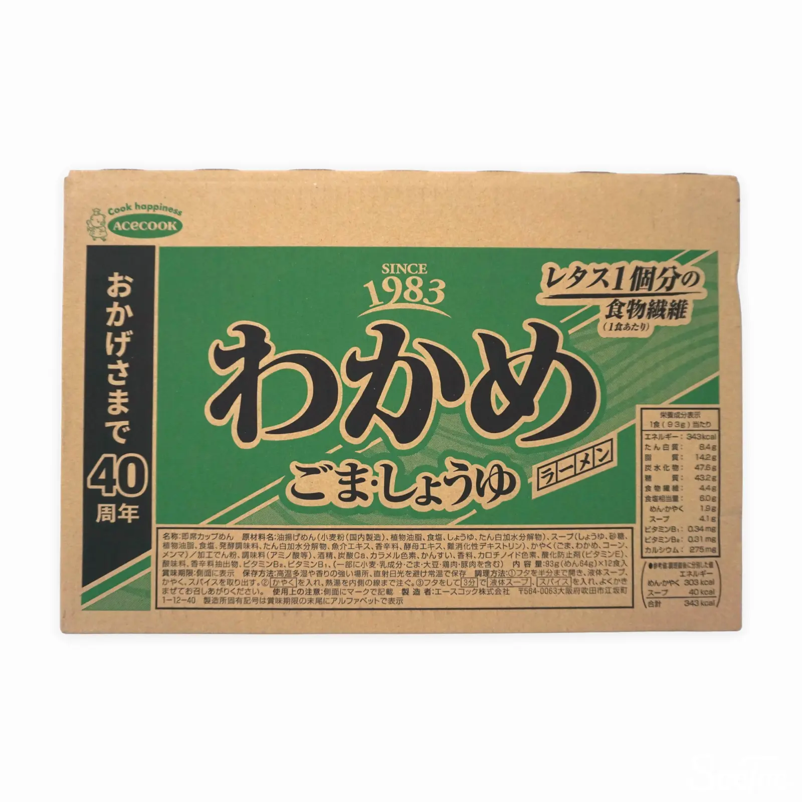 エースコックの看板商品わかめラーメンのセットです。たっぷりわかめが乗ったごましょうゆ風味のラーメンが12食分入っています。