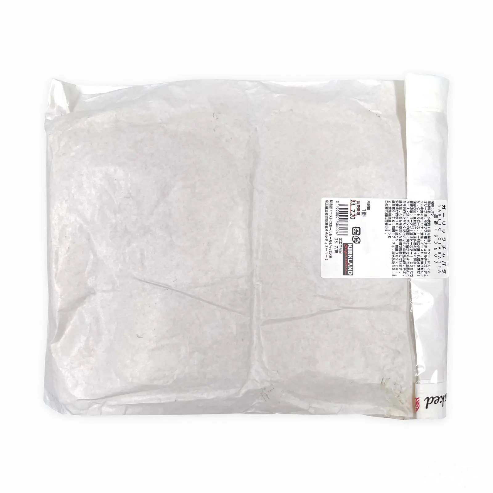 小麦粉(国内製造)、バター、にんにく、オリーブ油、パルメザンチーズ、デュラム小麦のセモリナ、ミックス粉(デュラム小麦サワー種、イースト)、小麦サワー種、食塩、乾燥パセリ/V .C、セルロース、(一部に小麦・乳成分を含む)