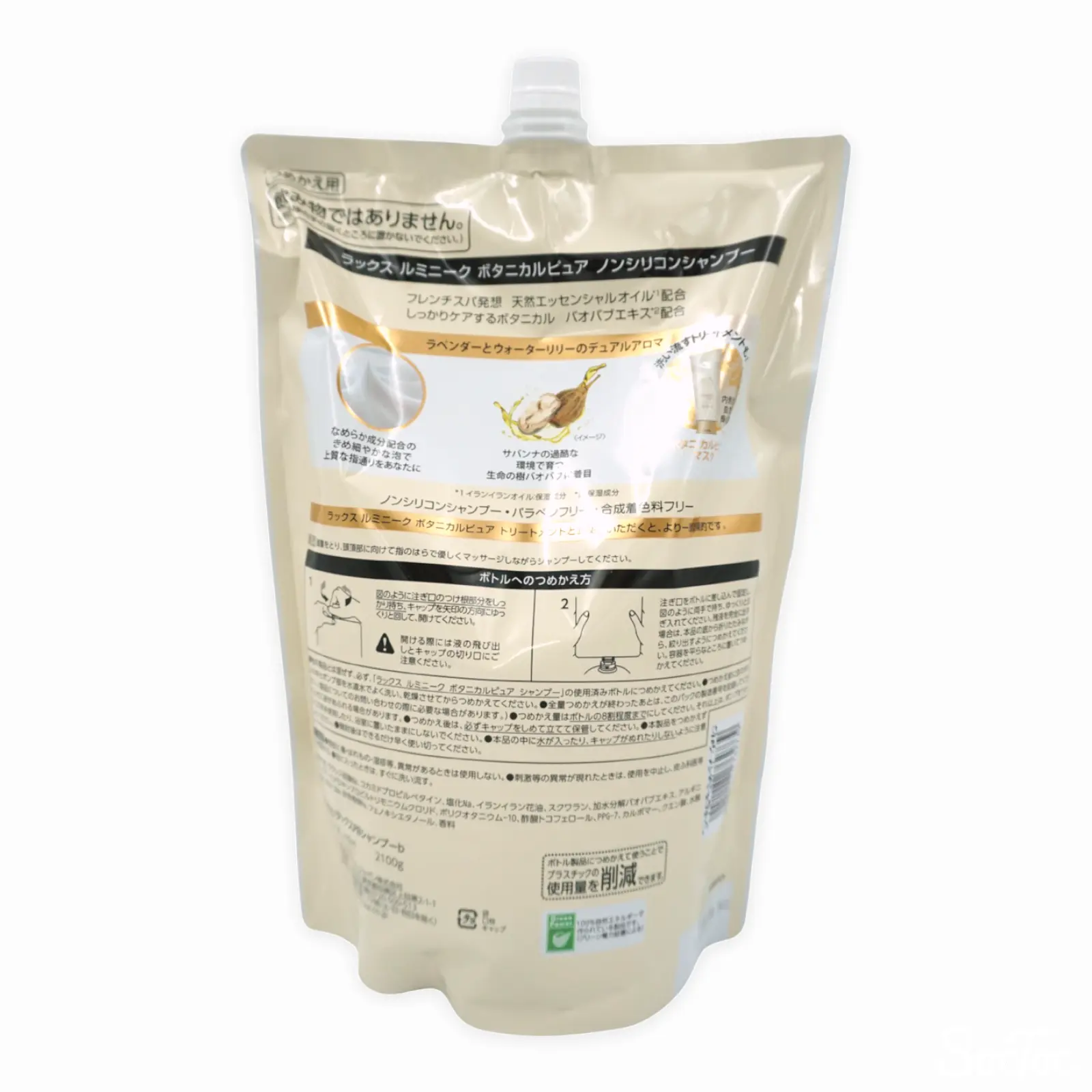 LUX シャンプー(LUMINIQUE ボタニカルピュア)の詰め替えパックです。通常詰め替え用の6倍分になる2,100g入り大容量です。