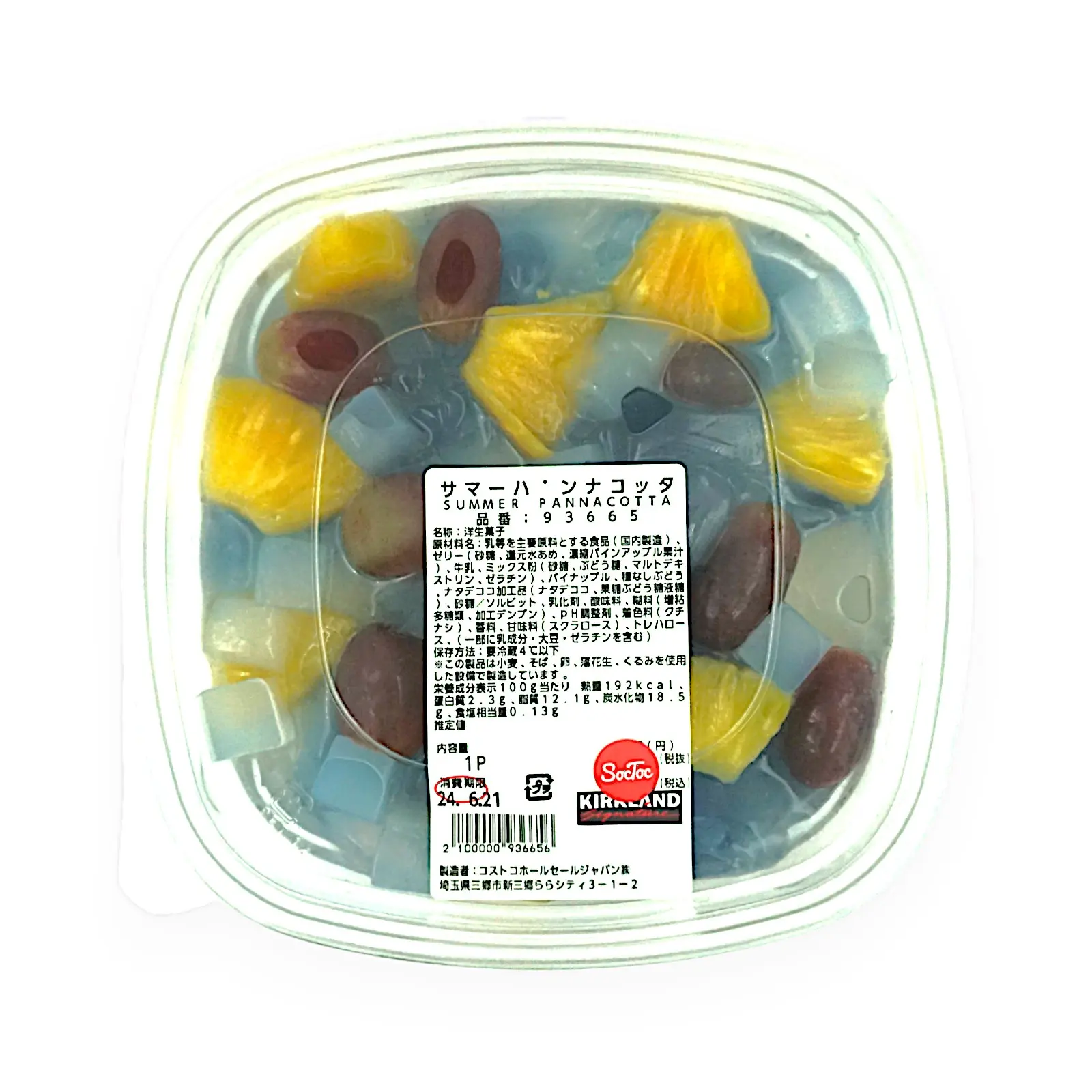 | 原材料名 | 乳等を主要原料とする食品(国内製造)、ゼリー(砂糖、還元水あめ、濃縮パインアップル果汁)、牛乳、ミックス粉(砂糖、ぶどう糖、マルトデキストリン、ゼラチン)、パイナップル、種なしぶどう、ナタデココ加工品(ナタデココ、果糖ぶどう糖液糖)、砂糖/ソルビット、乳化剤、酸味料、粘料(増粘多糖類、加工デンプン)、PH調整剤、着色料(クチナシ)、香料、甘味料(スクラロース)、トレハロース、(一部に乳成分・大豆・ゼラチンを含む) |
