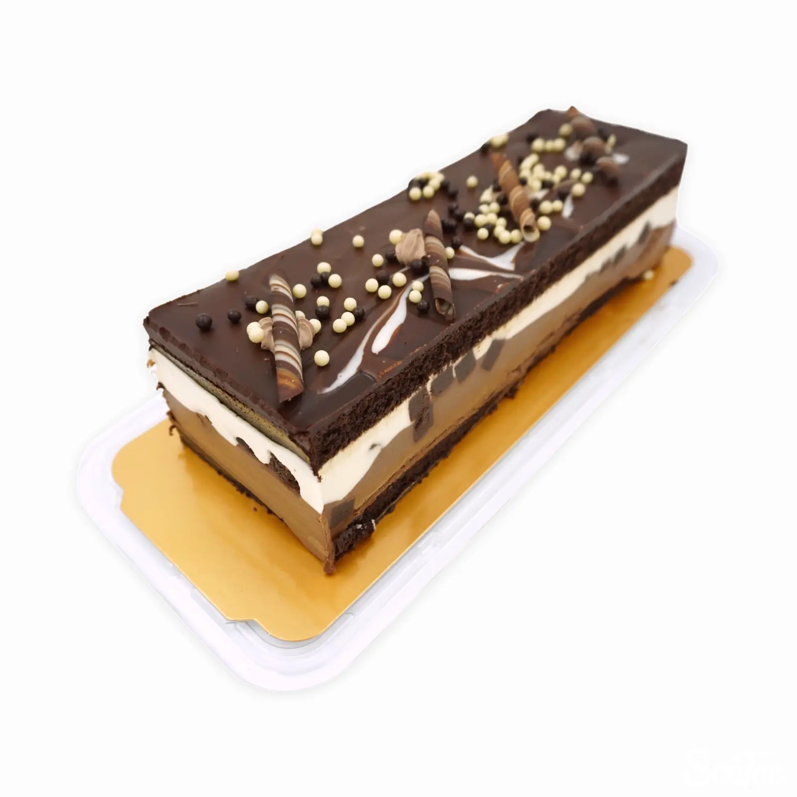 冬向きの濃厚なチョコレートケーキです。チョコレートスポンジにガナッシュ、チョコレートムース、クリームチーズムースなどがサンドされています。全体的にややビターな味わいのケーキです。