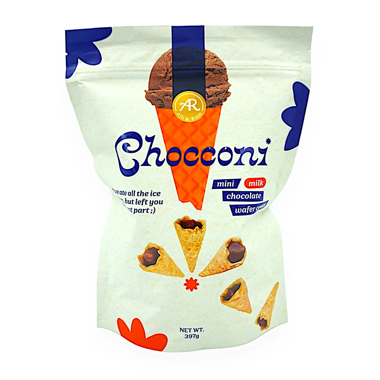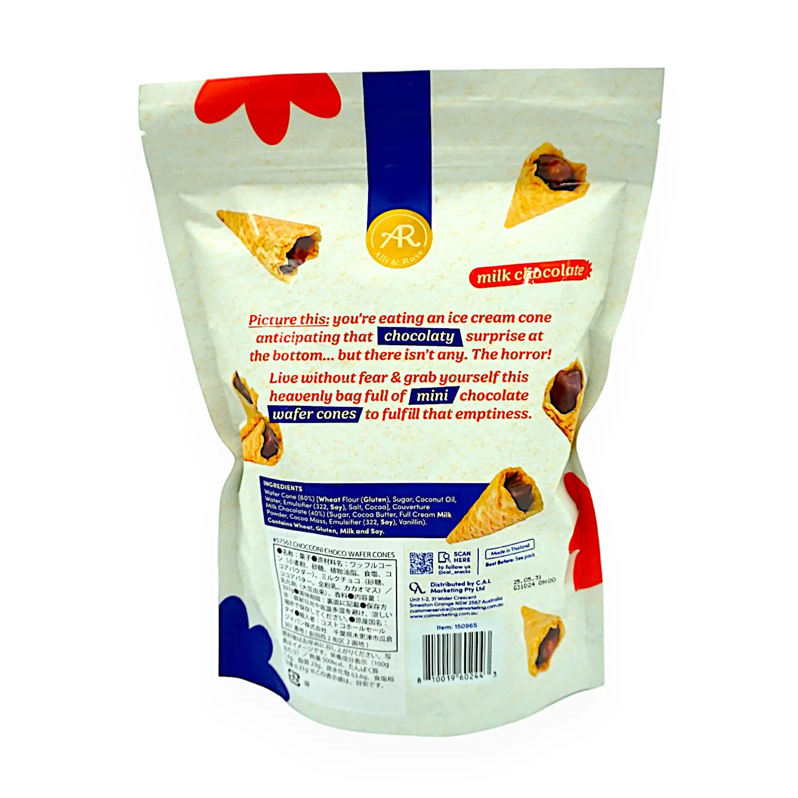 ミルクチョコレートとサクサクのワッフルコーンの食感が楽しめる、コーンアイス風のチョコ菓子です。