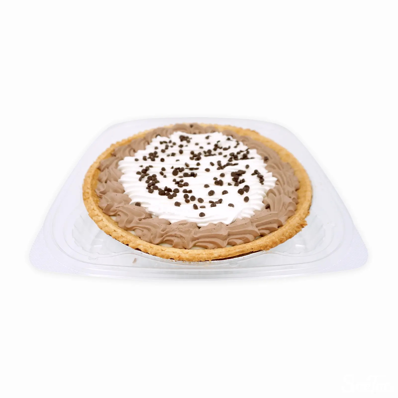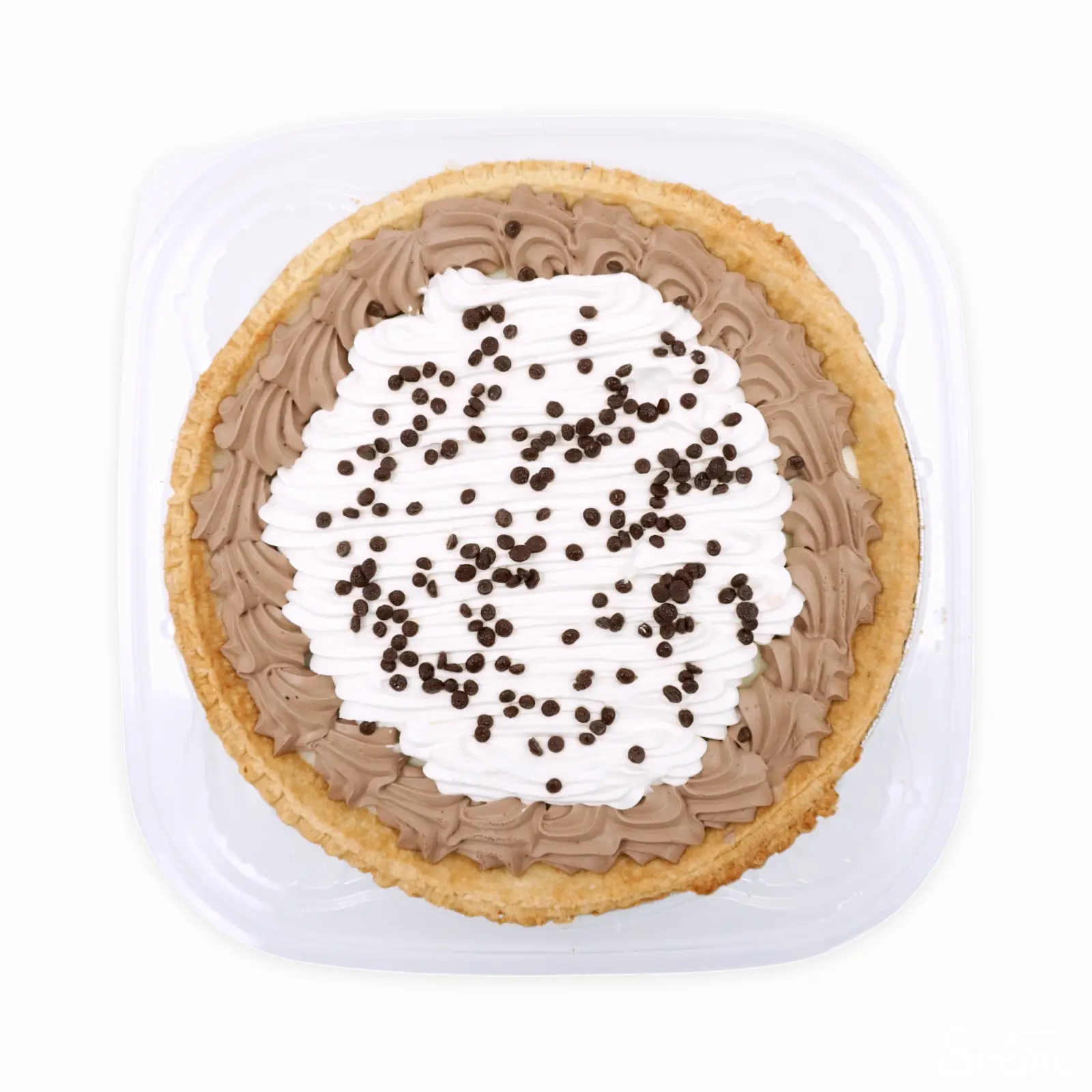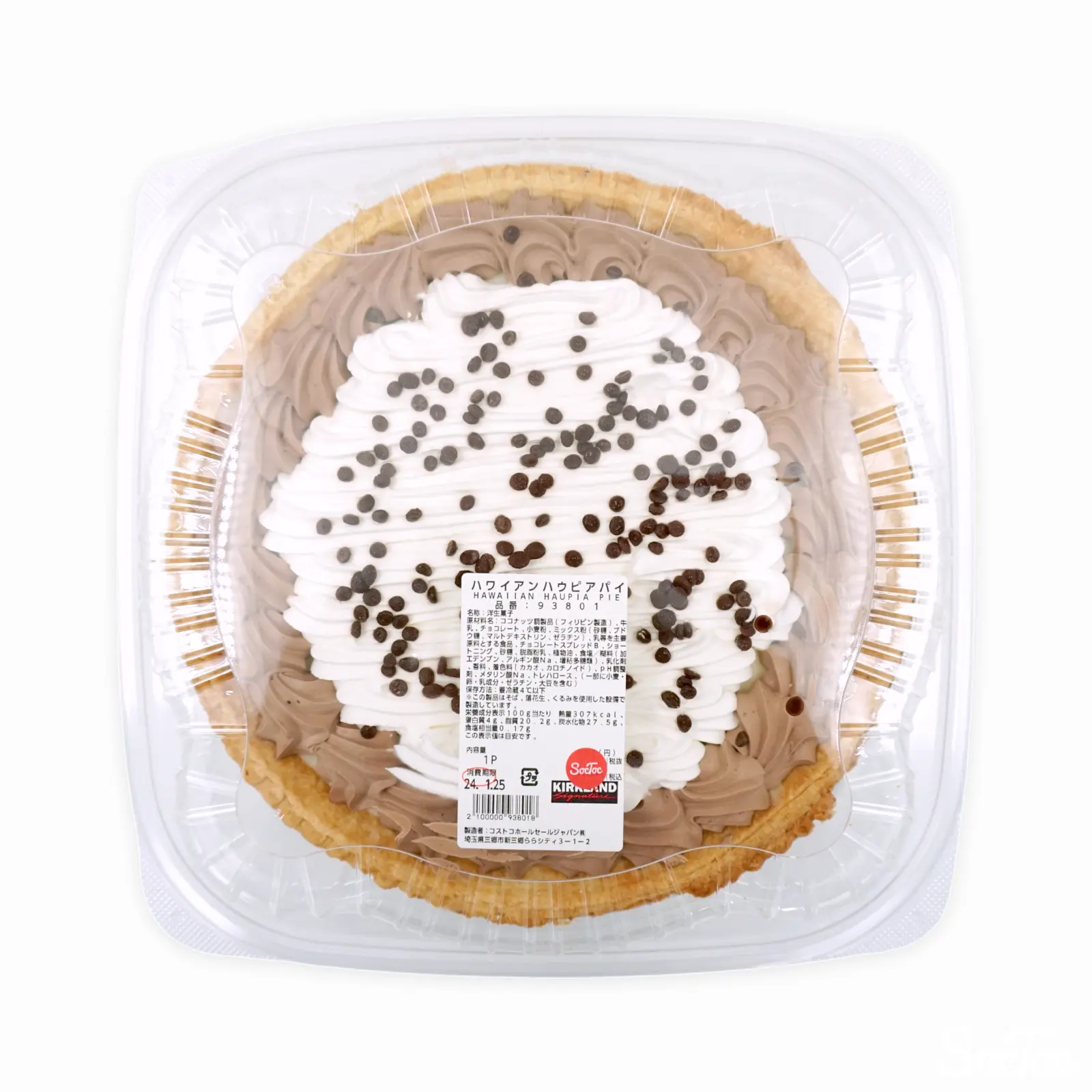 デリカデザートのコーナーより、大判サイズのハワイのデザート、ハウピアパイです。ココナッツミルクとチョコレートの2層のフィリングの上に、ホイップクリームとチョコレートクリームが絞られています。
