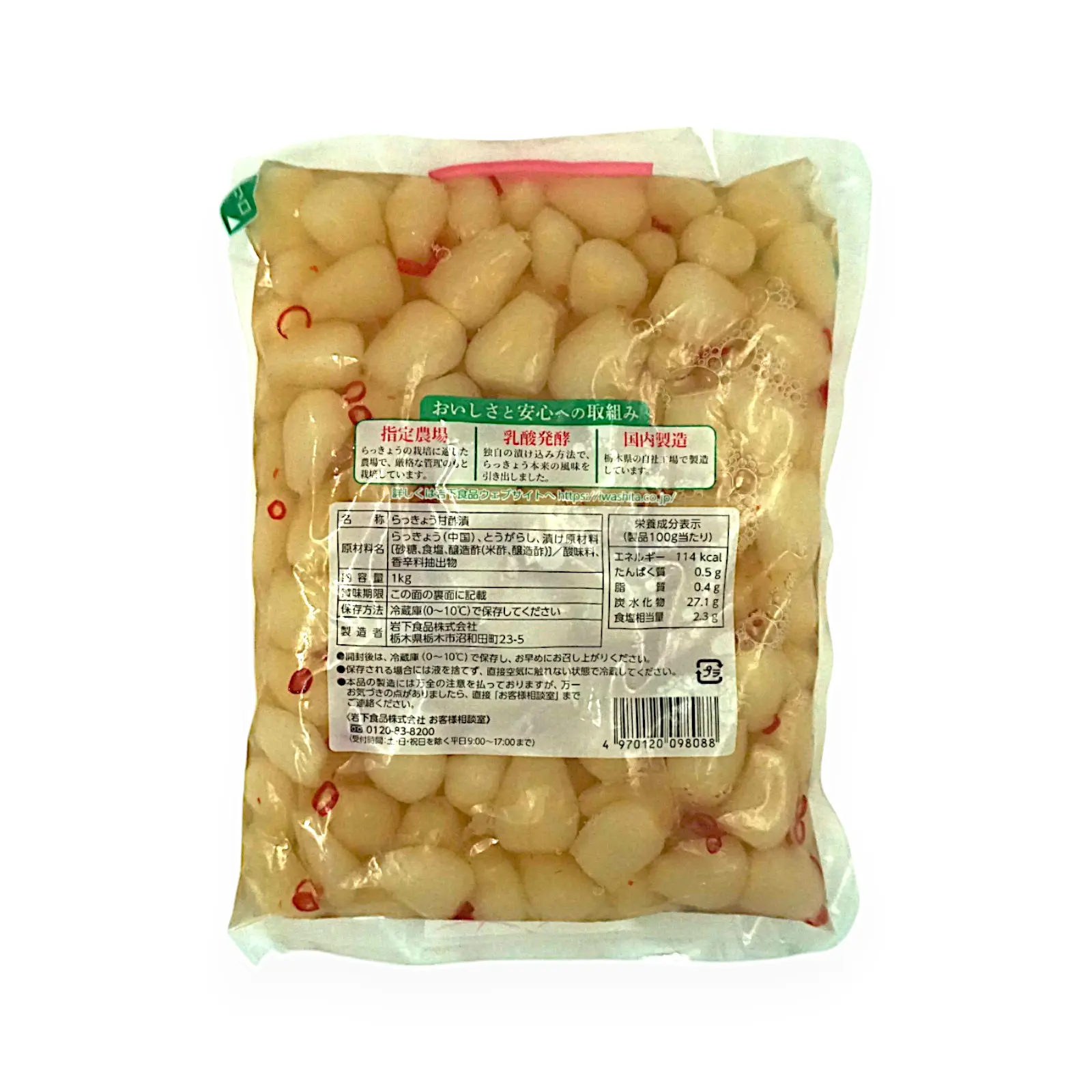 乳酸発酵による奥深い味わいのらっきょうに、唐辛子でほど良い辛みがついています。大容量の1kg入りです。