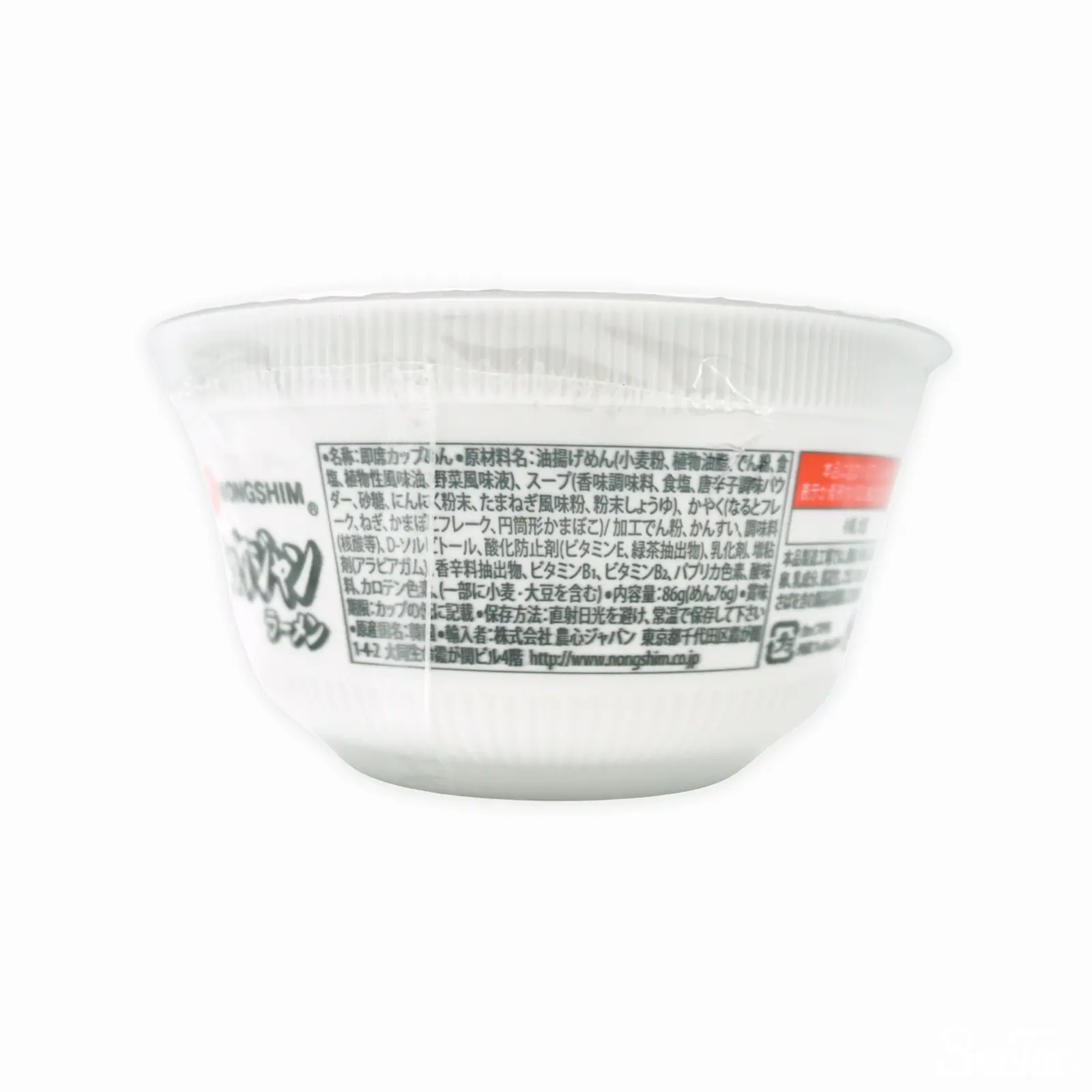 | 栄養成分表示 | 1食(86g)当たり 熱量370kcal、たんぱく質7.4g、脂質12.8g、炭水化物56.3g、食塩相当量3.8g(めん・かやく1.6g)(スープ2.2g) |