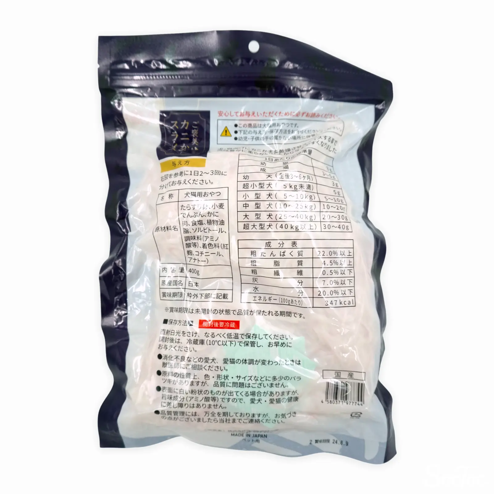 ※こちらの商品はペットフードです※ドライのカニかまスライス(着色料不使用)です。たっぷり400g入っています。トレーニングのご褒美などにぴったりです。