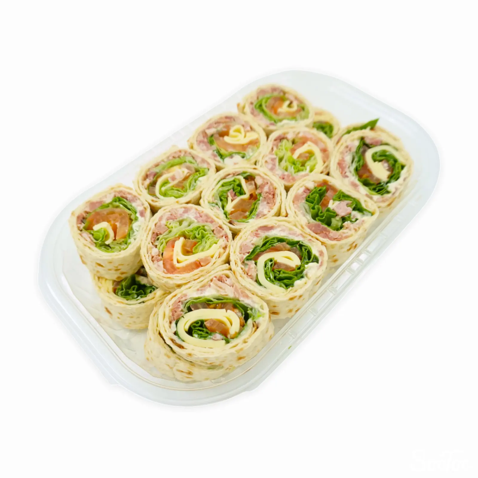 デリカコーナーにあるコストコ定番商品のハイローラー(BLT)です。トルティーヤに材料を巻き、輪切りにされたラップサンドが21ピース入っています。そのまま食べても、追加でトースターで加熱をしても、チーズなどの具材を足してもおいしくお召し上がりいただけます。