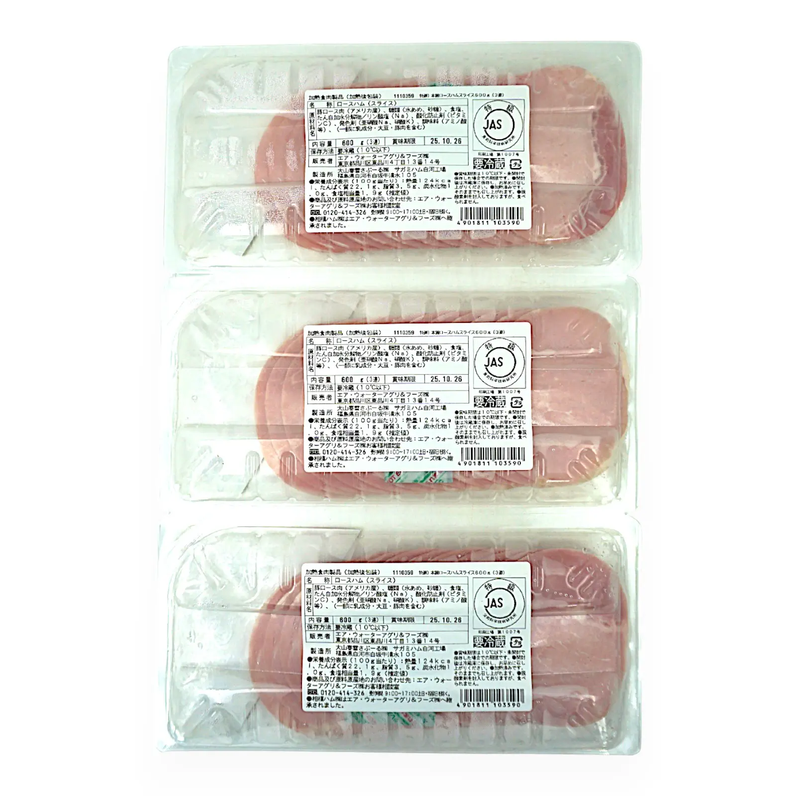 ロースハムの3連パックです。サラダやパン、チーズなどに合わせたりそのまま食べてもおいしく召しあがれます。
