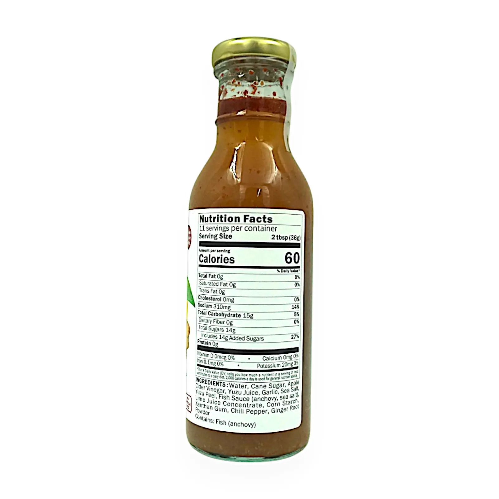 砂糖、りんご酢、ゆず果汁、にんにく、食塩、ゆず果皮、魚醬、濃縮ライム果汁、コーンスターチ、唐辛子、しょうが粉末/増粘剤(キサンタン)、(一部にりんごを含む)