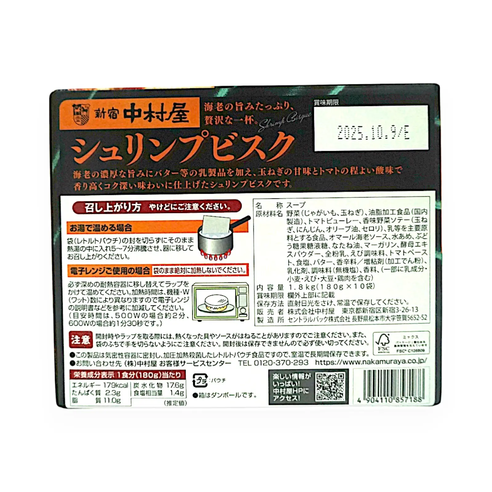 | 成分表示 | 野菜(じゃがいも、玉ねぎ)、油脂加工食品(国内製造)、トマトピューレー、香味野菜ソテー(玉ねぎ、にんじん、オリーブ油、セロリ)、乳等を主要原料とする食品、オマール海老ソース、水あめ、ぶどう糖果糖液糖、なたね油、マーガリン、酵母エキスパウダー、全粉乳、えび調味料、トマトペースト、食塩、バター、香辛料/増粘剤(加工でん粉)、乳化剤、調味料(無機塩)、香料、(一部に乳成分・小麦。えび・大豆・鶏肉を含む) |