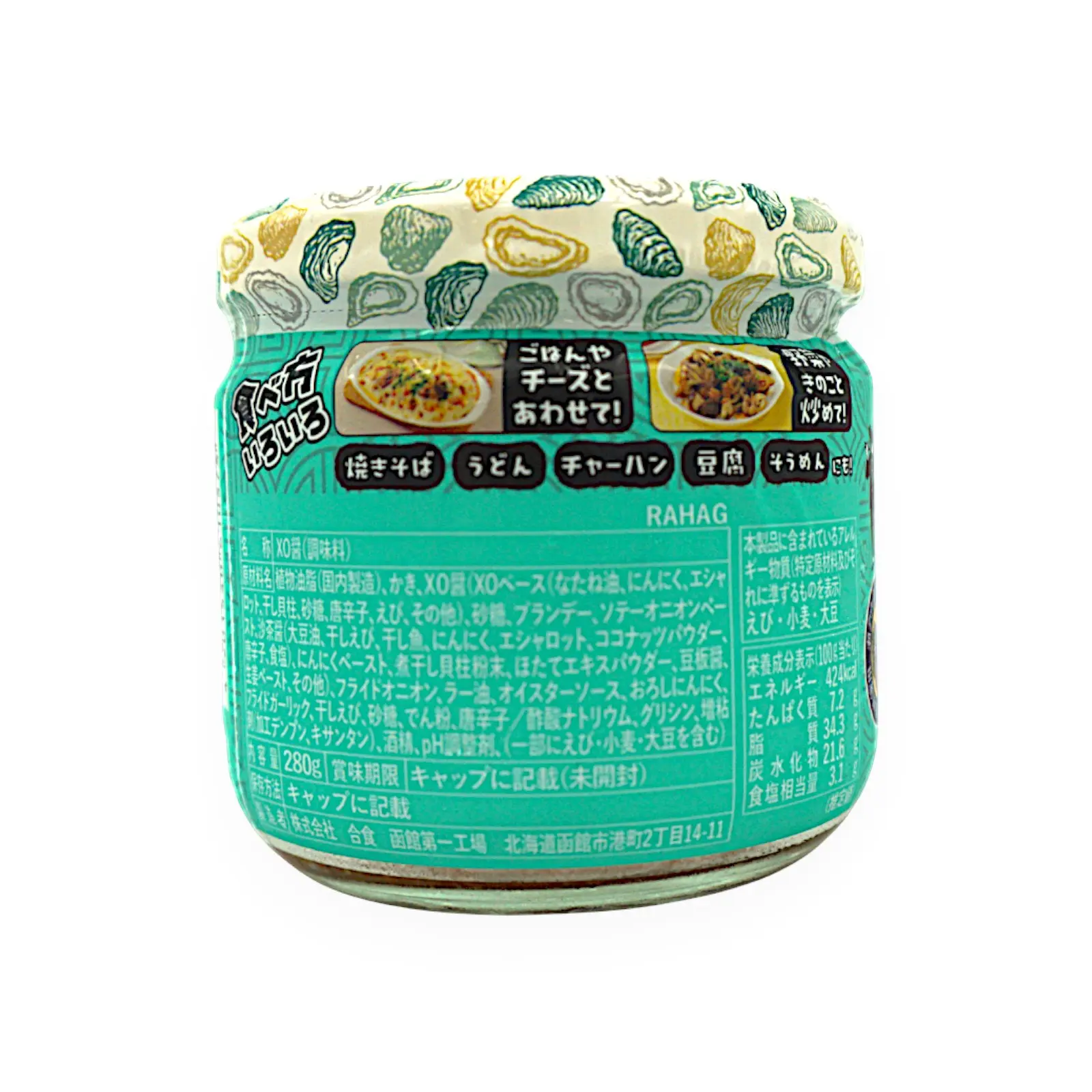 | 原材料名 | 植物油脂(国内製造)、かき、X0醬(XOベース(なたね油、にんにく、エシャロット、干し貝柱、砂糖、唐辛子、えび、その他)、砂糖、プランテー、ソテーオニオンペースト、沙茶醬(大豆油、干しえび、干し魚、にんにく、エシャロット、ココナッツパウダー、豆板醤、生姜ペースト、その他)、フライドオニオン、ラー油、オイスターソース、おろしにんにく、フライドガーリック、干しえび、砂糖、でん粉、唐辛子/酢酸ナトリウム、グリシン、増粘剤(加工デンプン、キサンタン)、酒精、pH調整剤、(一部にえび・小麦・大豆を含む) |