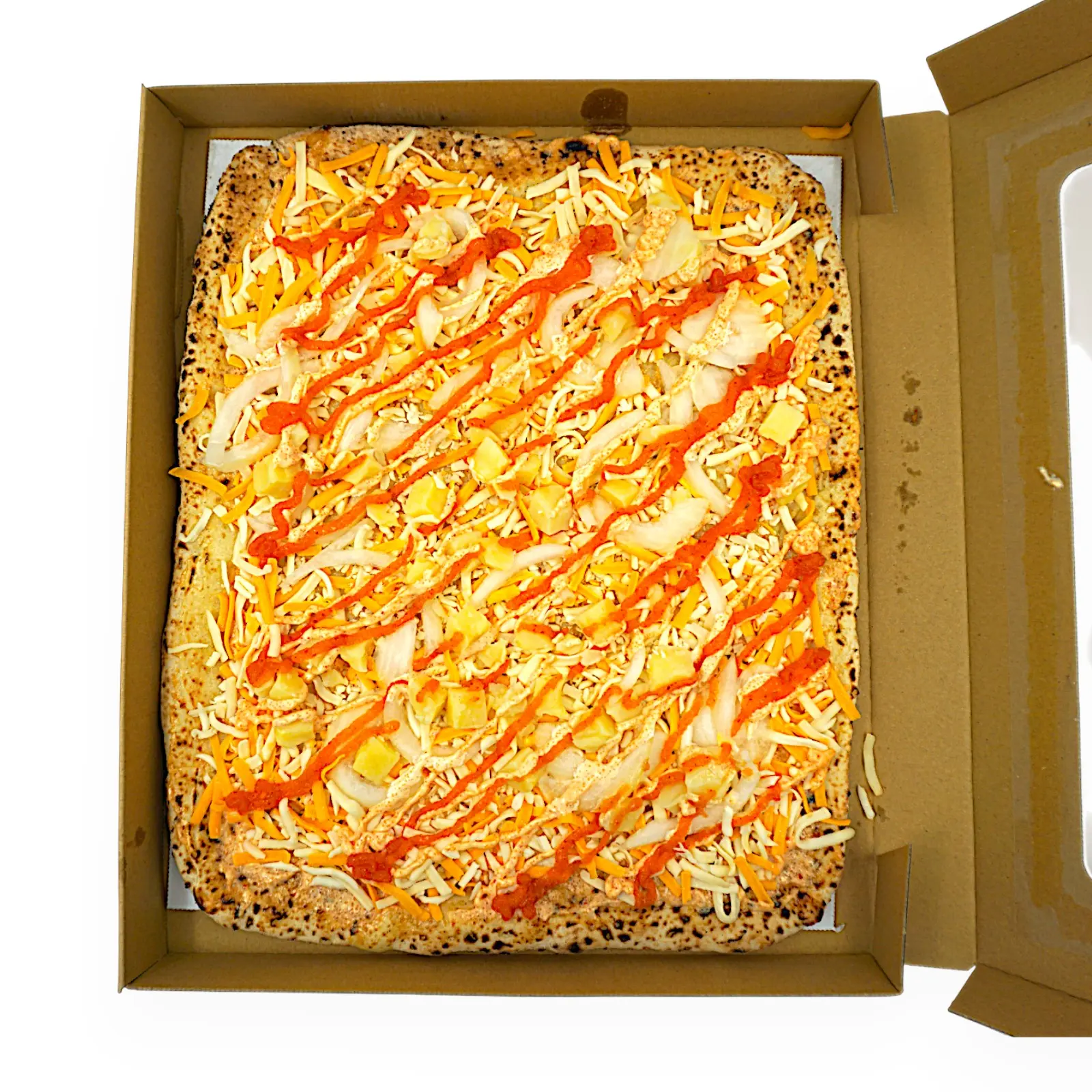 | 原材料名 | ピザ生地(国内製造)(小麦粉、食塩、とうもろこし油、その他)、ナチュラルチーズ、じゃがいも加工品、辛子明太子ソース (すけとうだらの卵、発酵調味料、食塩、その他)、マヨネーズ、玉葱/セルロース、甘味料(ソルビット)、調味料(核酸等)、増粘剤(加工でん粉)、酸化防止剤(V.C)、着色料(赤ビート、カロチノイド、紅麹)、ニコチン酸、酵素、香辛料、発色剤(亜硝酸Na)、ピロリン酸Na、(一部に小麦・卵・乳成分・大豆・ゼラチンを含む ) |