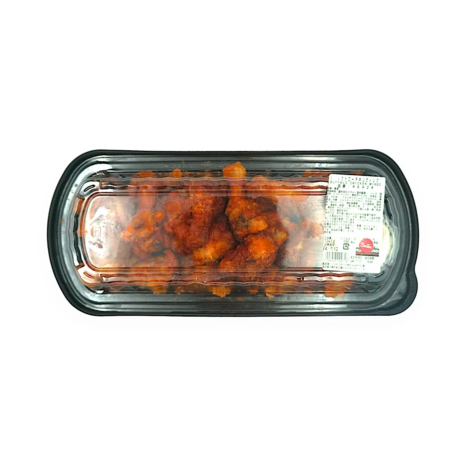 | 原材料名 | 鶏手羽元フライ(国内製造)、ソース(醸造酢、トマトペースト、唐辛子ペースト、水あめ、食塩、その他)、ブルーチーズソース(マヨネーズ、植物油、水飴、ブルーチーズパウダー、その他)/増粘剤(加工デンプン、増粘多糖類)、pH調整剤、酸味料、調味料(核酸)、酸化防止剤(V .C)、乳化剤、着色料(カロチノイド)、(一部に小麦・卵・乳成分・大豆・鶏肉を含む) |