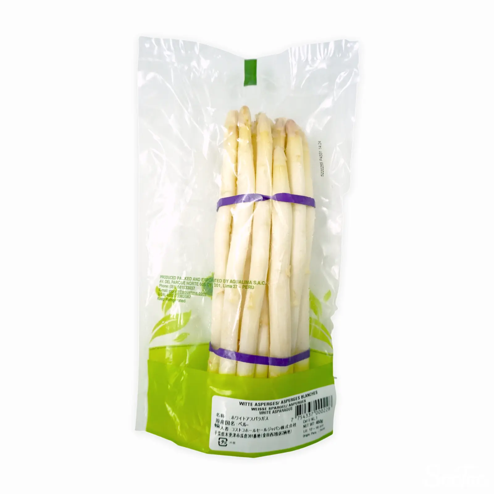 ホワイトアスパラガス450gのパックです。グリーンアスパラよりも甘みがあり、茹でてソースなどを添えると大変美味しくお召し上がりいただけます。
