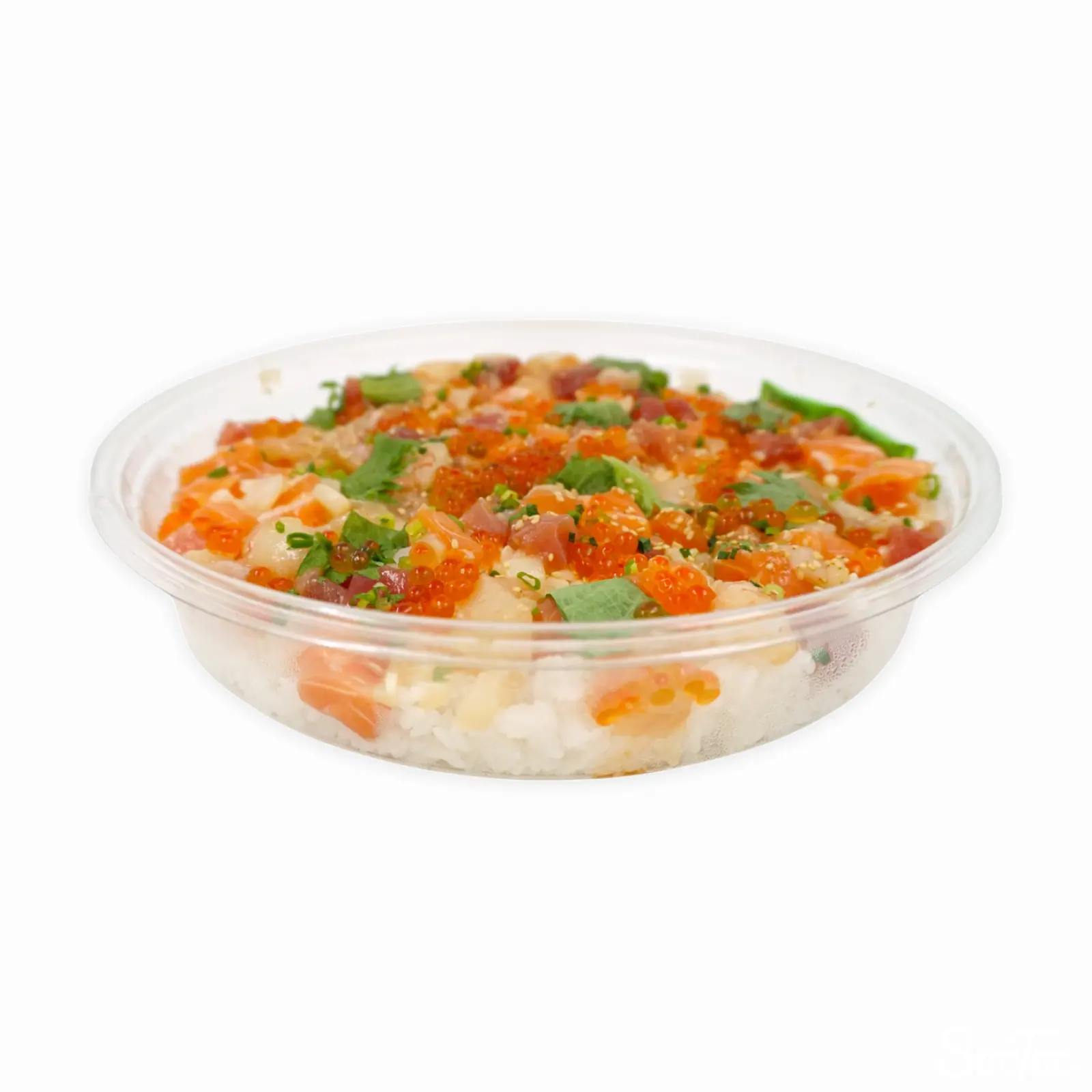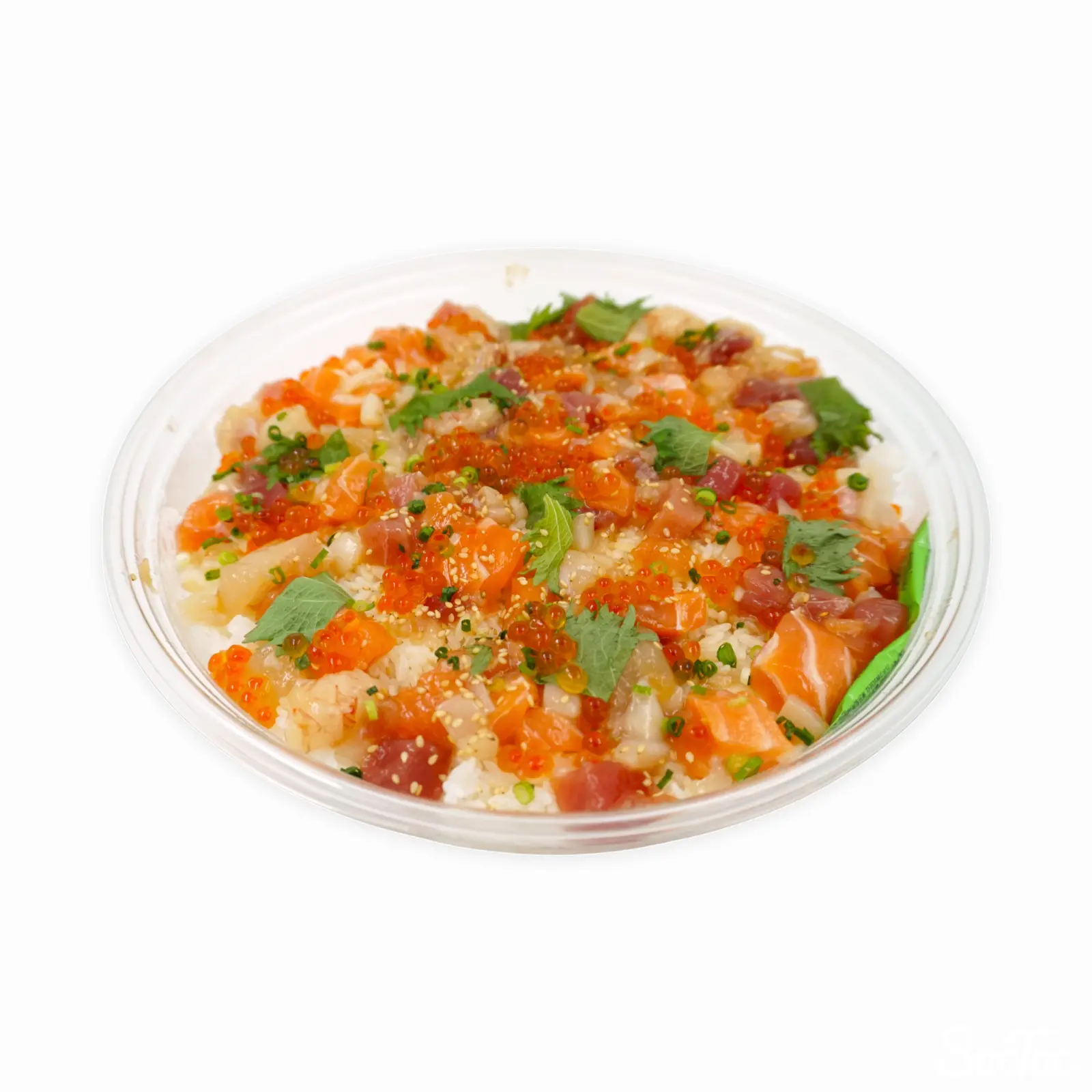 デリカコーナーにあるいか、サーモン、まぐろ、えび、真鯛、いくらが入った贅沢漬けちらしです。具材が大きく食べ応えがあり、満足感の高い海鮮ちらしです。※本商品は消費期限が当日のため、午後の配送でのみお届けいたします。