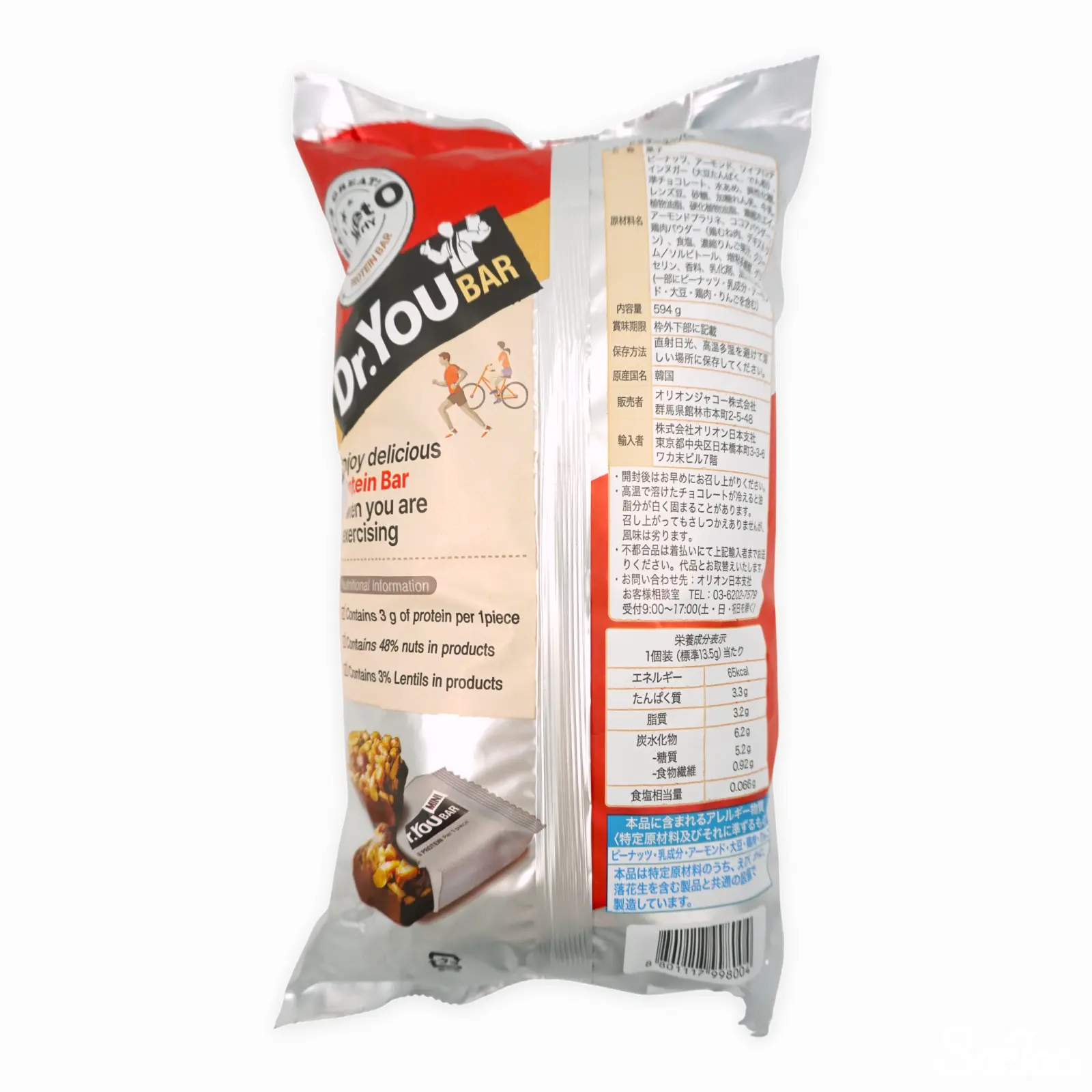 | 原材料名 | ピーナッツ、アーモンド、ソイプロテインヌガー(大豆たんぱく、でん粉)、準チョコレート、水あめ、異性化糖、レンズ豆、砂糖、加糖れん乳、牛乳、植物油脂、硬化植物油脂、濃縮ホエイ、アーモンドプラリネ、ココアパウダー、鶏肉パウダー(鶏むね肉、デキストリン)、食塩、濃縮りんご果汁、クリーム/ソルビトール、増粘多糖類、グリセリン、香料、乳化剤、加工でんぷん、(一部にピーナッツ・乳成分・アーモンド・大豆・鶏肉・りんごを含む) |