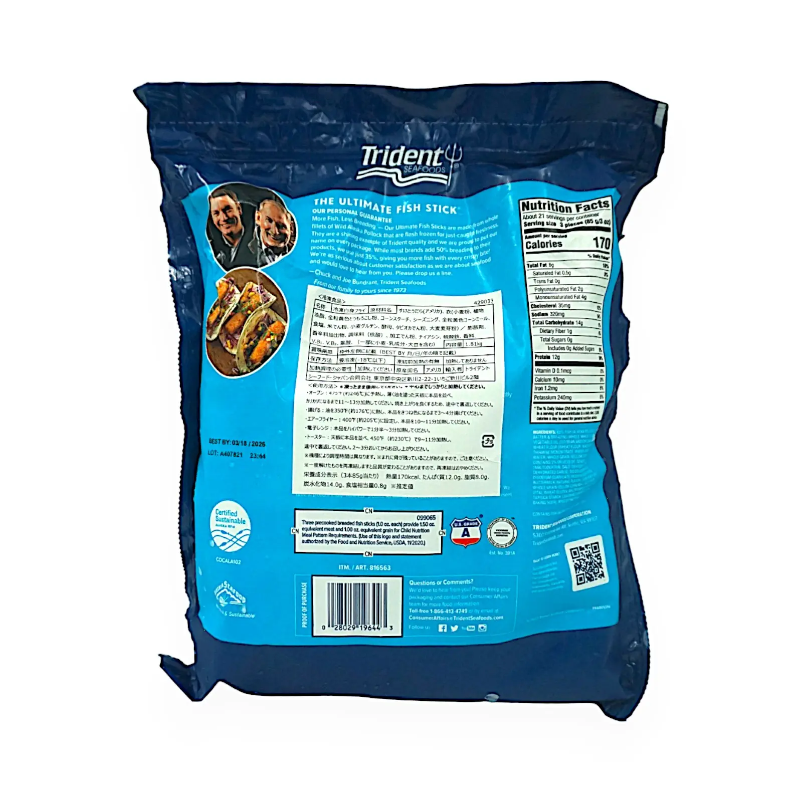 すけとうだら(アメリカ)、衣(小麦粉、植物油脂、全粉黄色とうもろこし粉、コーンスターチ、シーズニング、全粉黄色コーンミール、食塩、米でん粉、小麦グルテン、酵母、タピオカでん粉、大麦麦芽粉)/膨張剤、香辛料抽出物、調味料(核酸)、加工でん粉、ナイアシン、硫酸鉄、香料、V.B1、V.B2、葉酸、(一部に小麦・乳成分・大豆を含む)