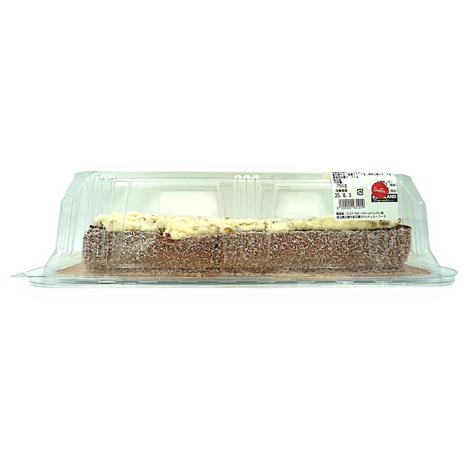 | 原材料名 | チョコレートスプレッドB(国内製造)、ケーキミックス(小麦粉、砂糖、ココアパウダー、植物油、食塩)、全卵、粉糖、ココナッツ、乳等を主要原料とする食品、脱脂粉乳、植物油、加工油脂、バタ一、くるみ、ショートニング(植物油脂)/ソルビット、乳化剤、グリセリン、加工でん粉、香料、着色料(カカオ、カロチン)、メタリン酸Na、pH剤、増粘多糖類、酸化防止剤(V.E)、膨張剤、漂白剤(亜硫酸塩)、(一部にくるみ・小麦・卵・乳成分・大豆を含む) |