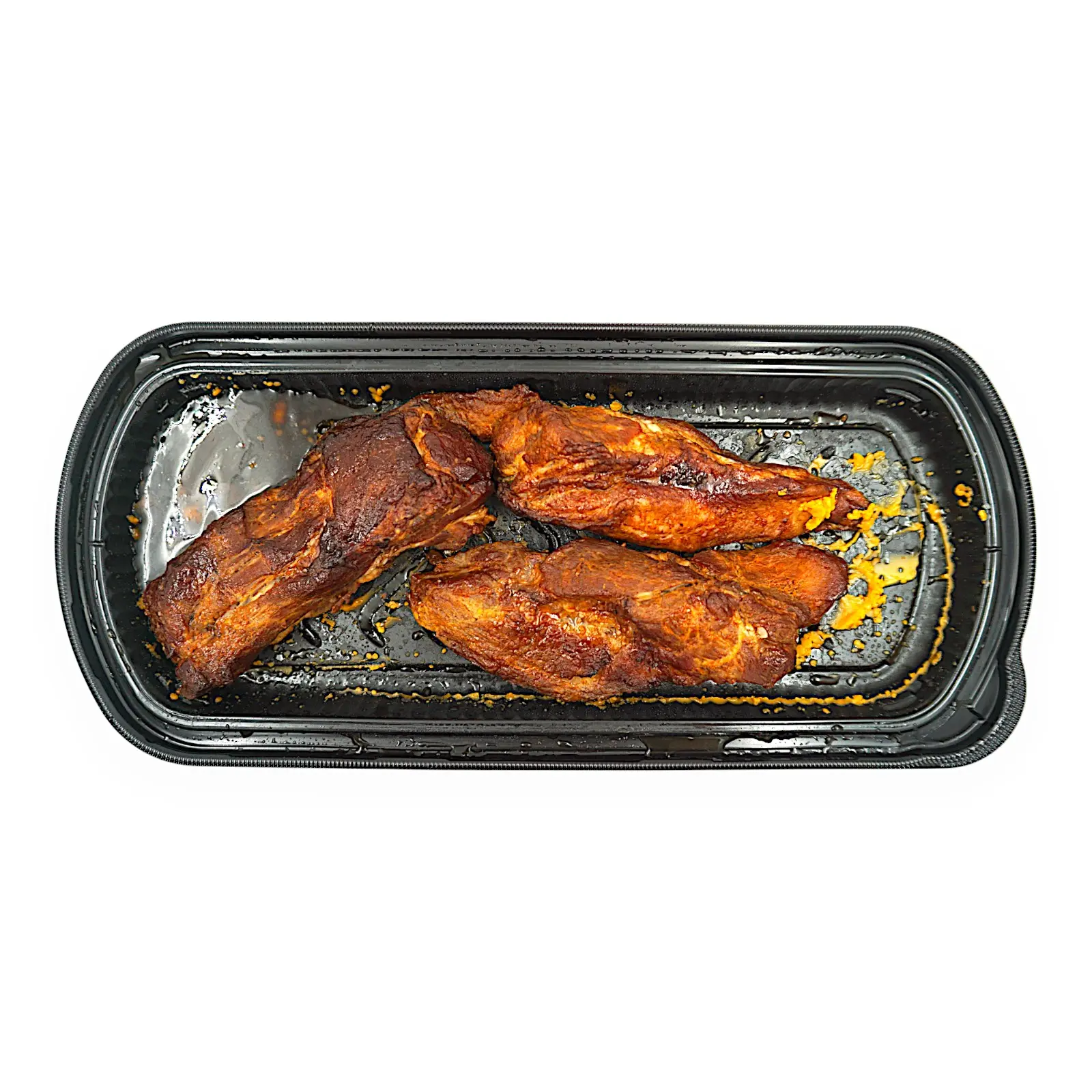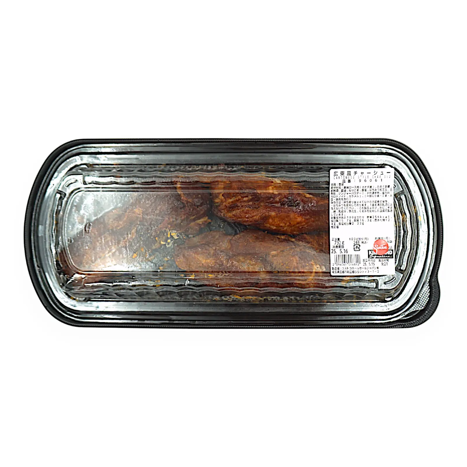 豚肩ロース肉(カナダ産)、たれ(砂糖、紹興酒、醤油、ねりごま、食塩、はちみつ加工品、五香粉、ジンジャーパウダー)/pH調整剤、着色料(カロチノイド、カラメル)、(一部に小麦・ごま・大豆・豚肉を含む)