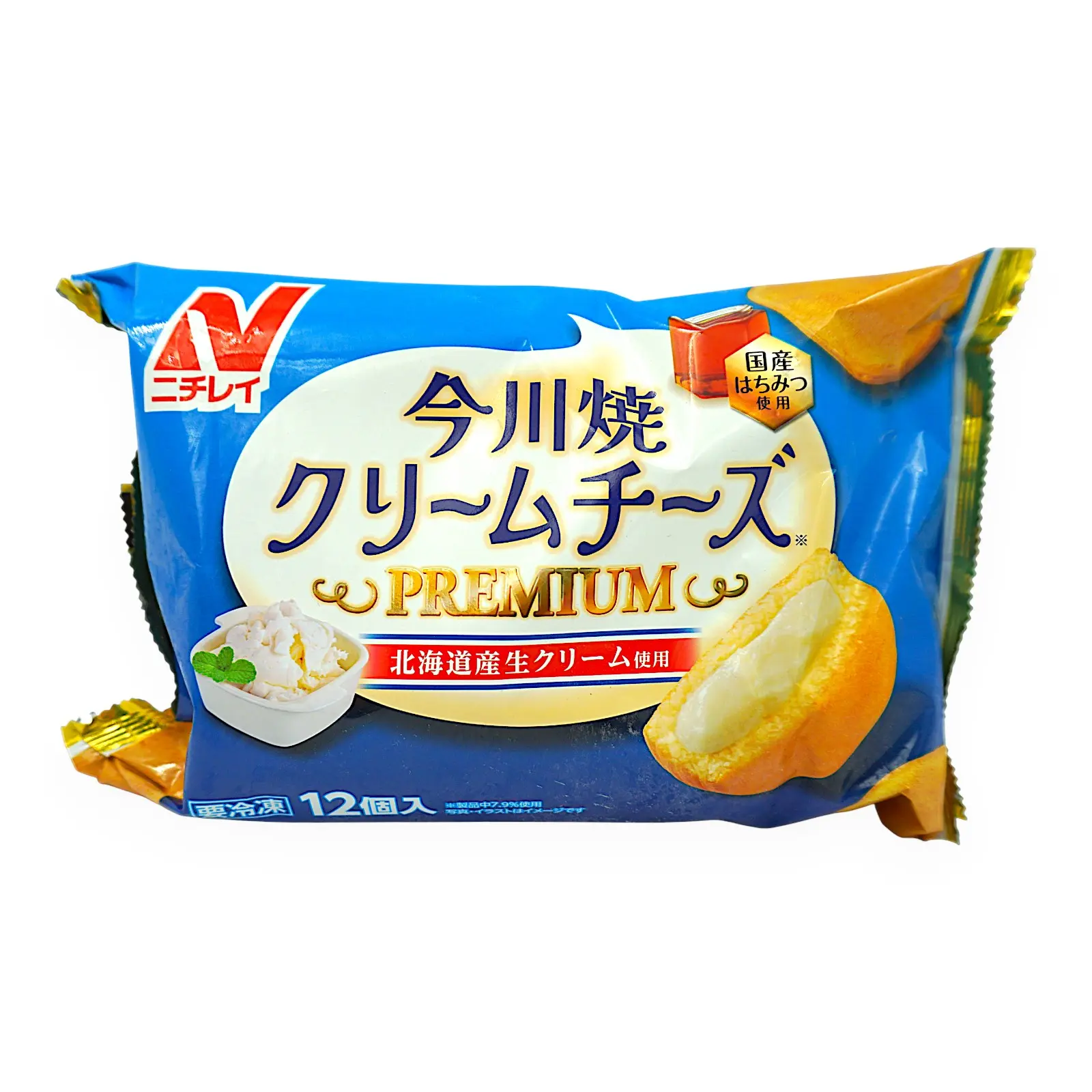 北海道産生クリームと国産はちみつを使用したプレミアムな今川焼です。電子レンジ、自然解凍でお召し上がりいただけます。