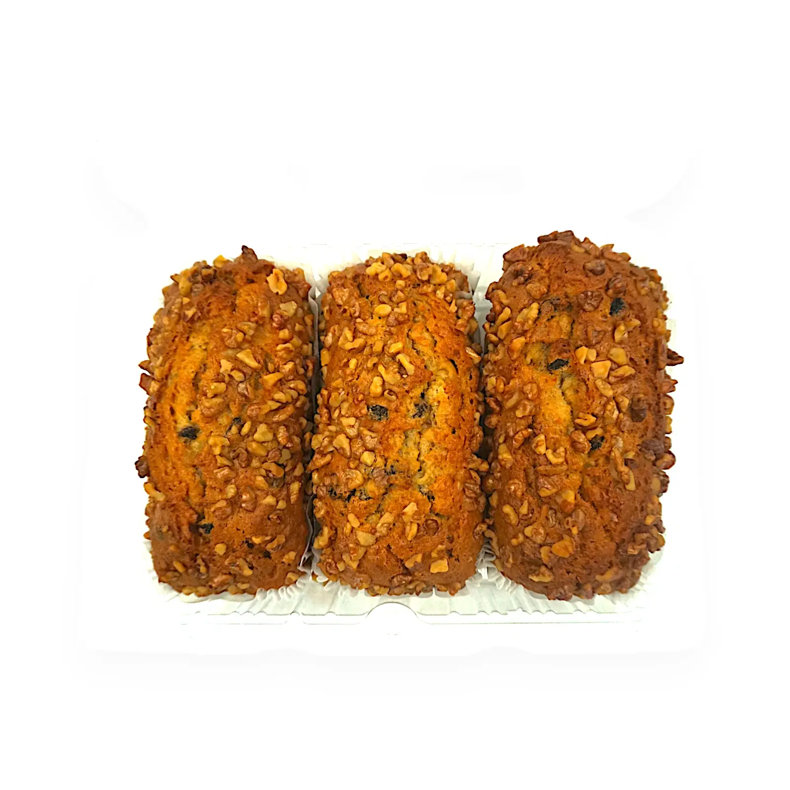 レーズンとクルミが入ったパウンドケーキ3本のパックです。生地にはにんじんの優しい甘みもあり、おやつや朝食におすすめです。