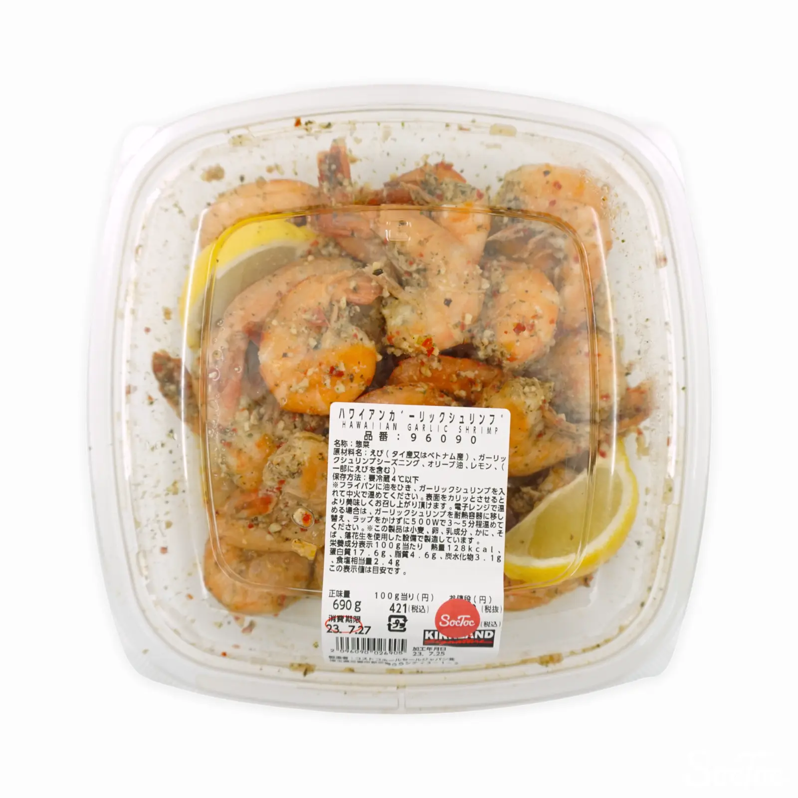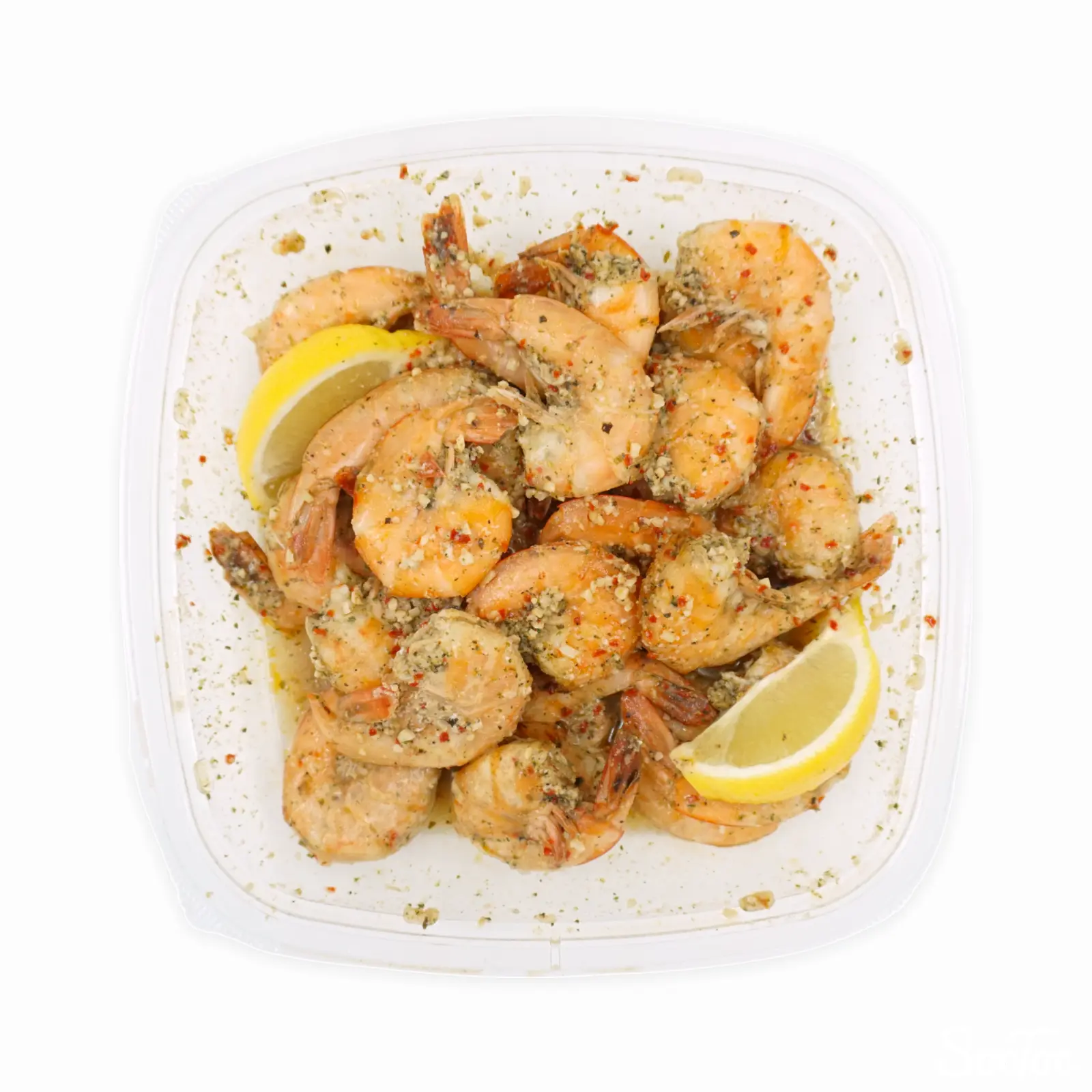 殻つき(※背腸除去済み)のエビをガーリックシーズニングで炒めたデリカです。フライパンまたはレンジ等で温めてお召し上がりください。