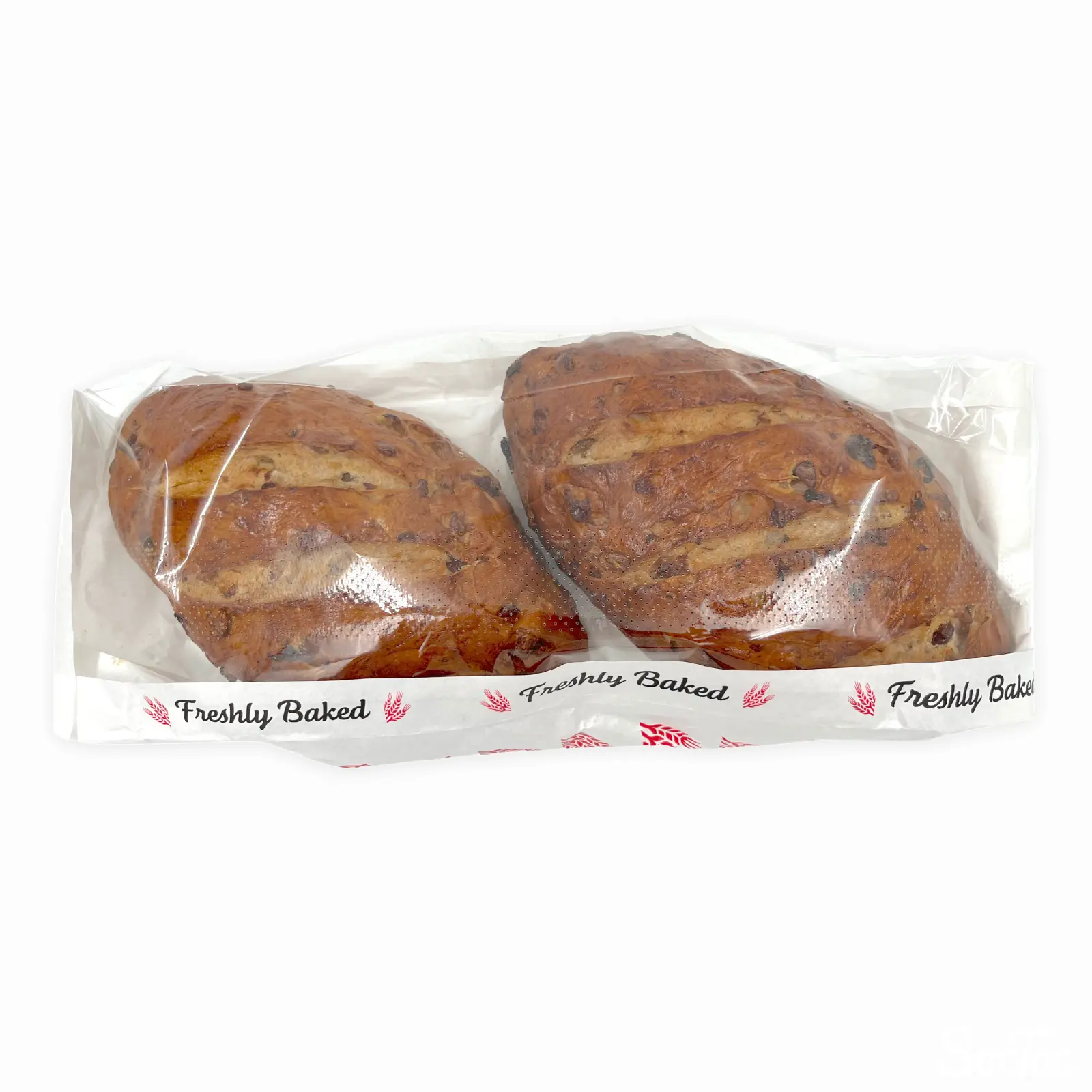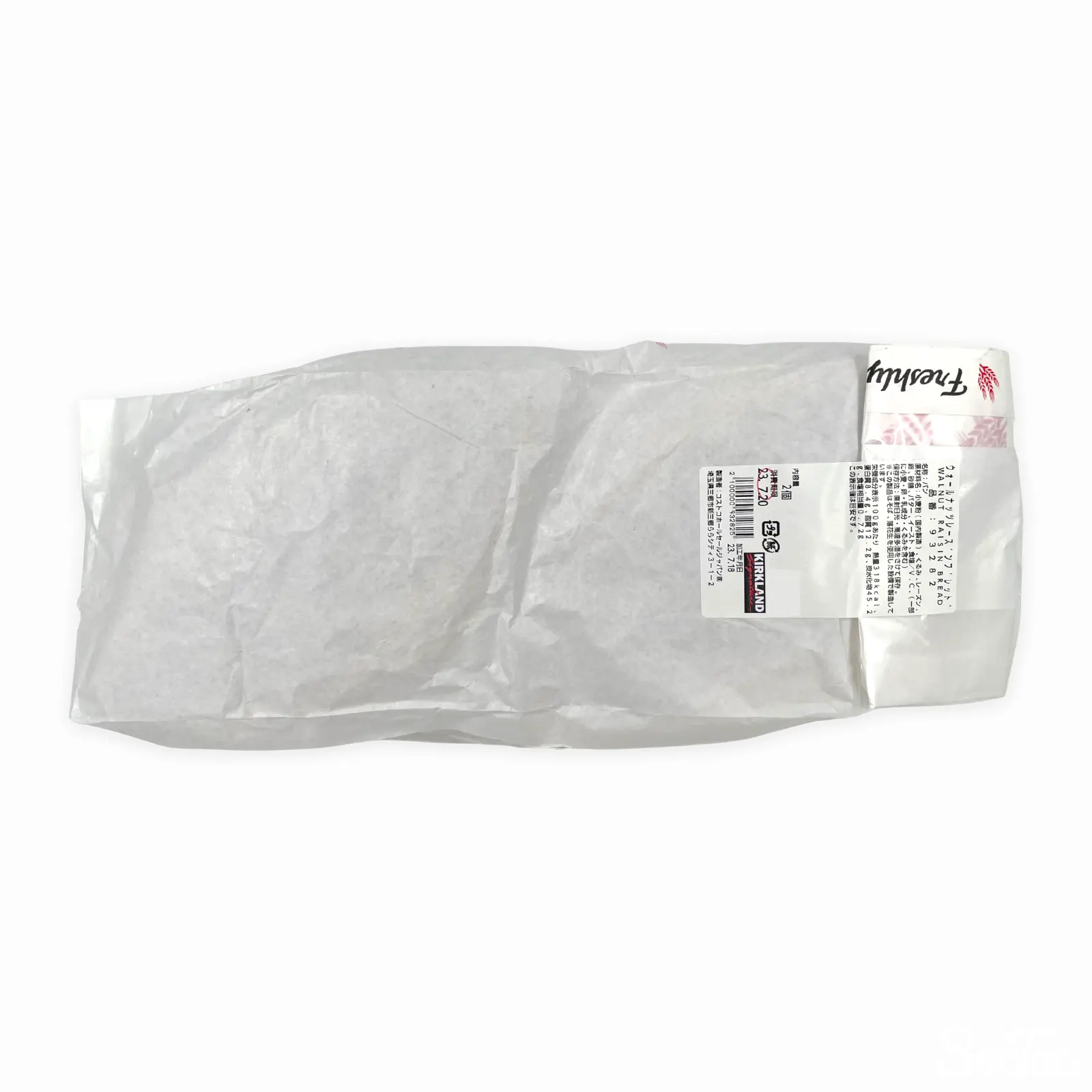 ウォールナッツとレーズンの入った硬めのパンです。およそ25cmほどの直径の大きなパンが2つ入っています。たくさんのくるみが入っています。スライスしてクリームチーズや果実ジャム等をのせてお召し上がりください。