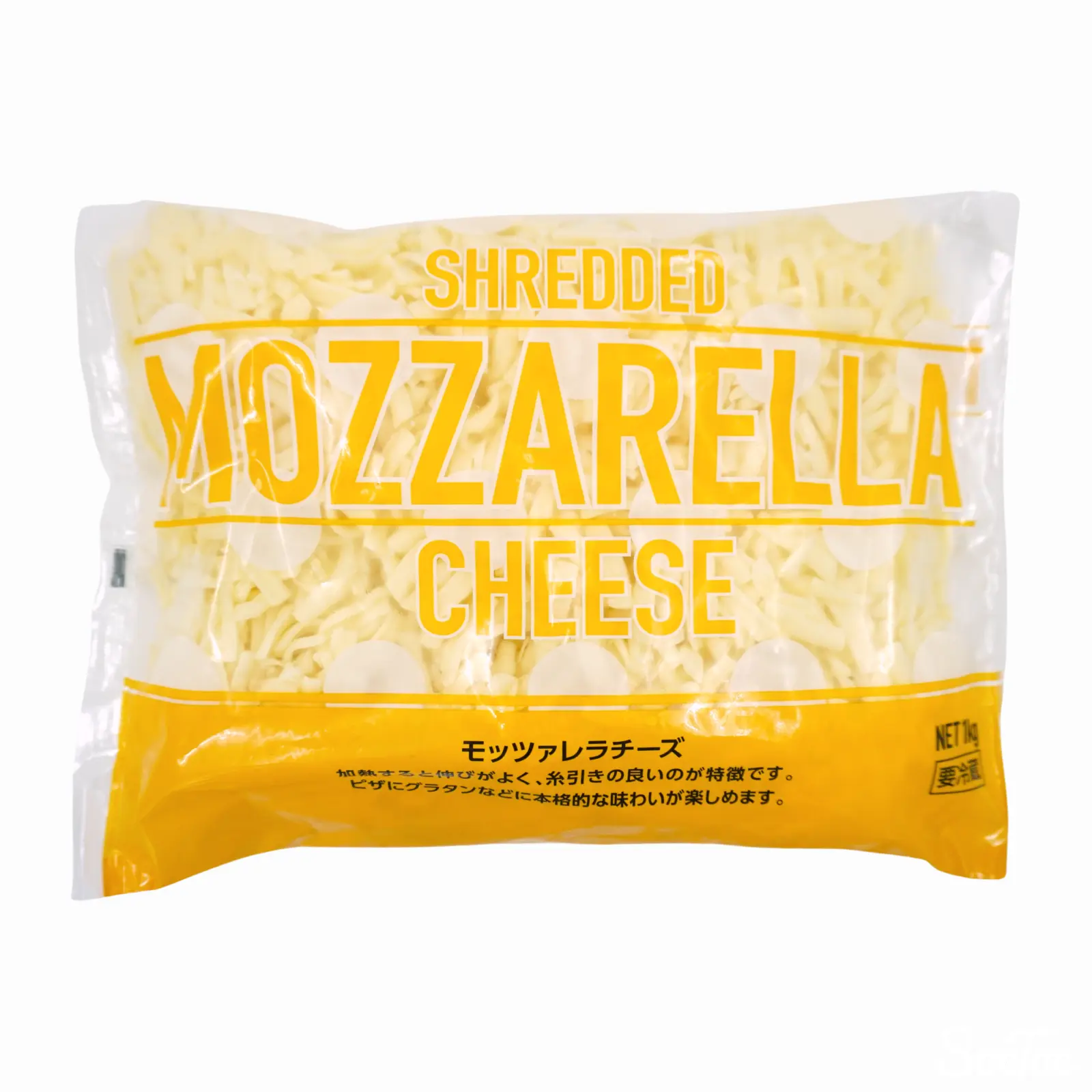 チーズ食品のムラカワより、シュレッドチーズ1kgのパックです。大容量のためたっぷりご使用いただけます。こちらはモッツァレラチーズとなっており、あっさりとした味わいです。