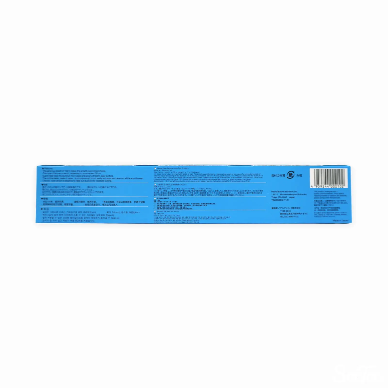 アルファミックのアルミホイルです。100mの大容量で入っており、買い足しの手間を省くことができます。