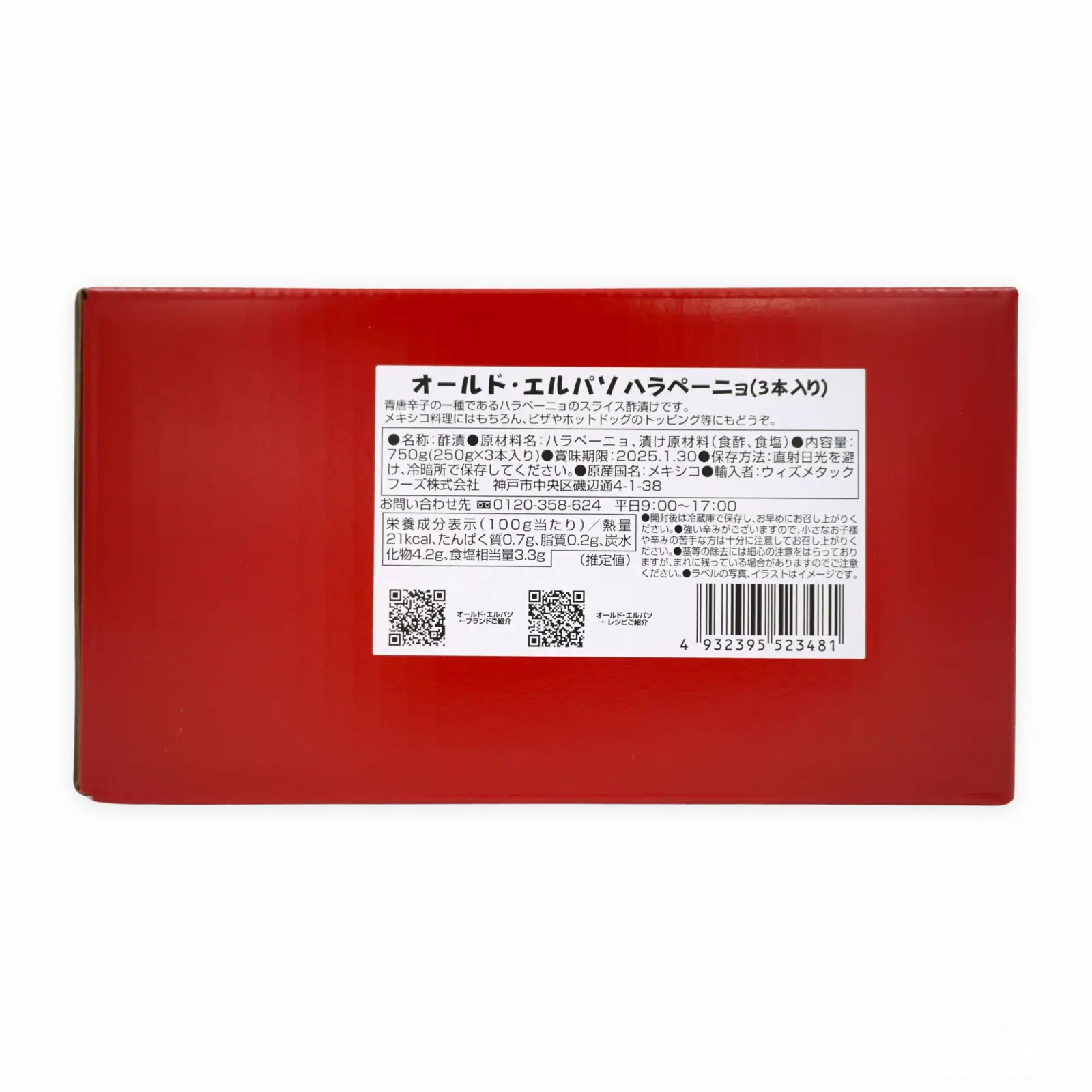オールド エル パソの瓶入りハラペーニョです。250g入りが3瓶のセットになります。タコスなどメキシコ料理全般にお使いいただけるほか、ピザやホットドッグのトッピングとしても美味しくお召し上がりいただけます。