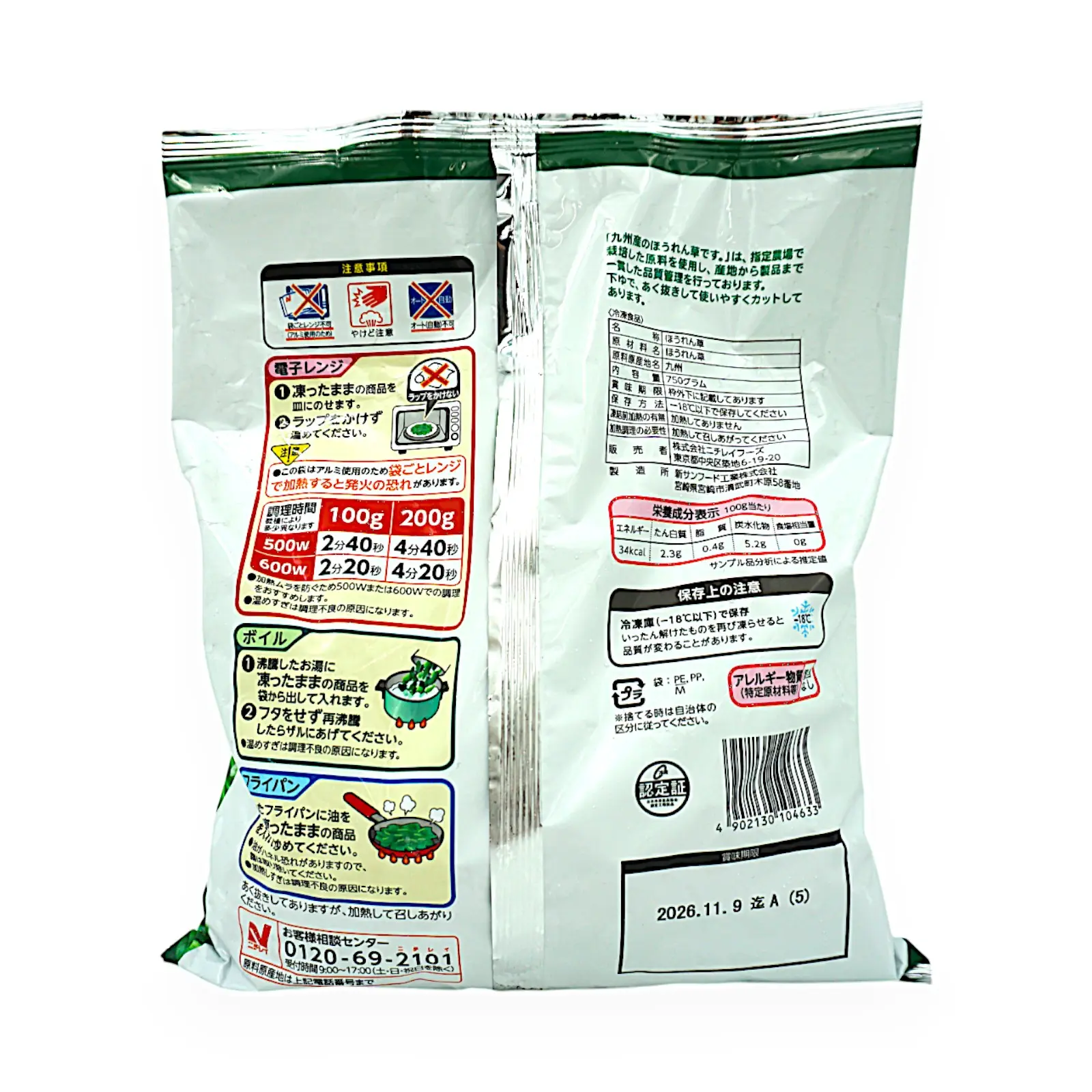 ほうれん草の冷凍750gパッケージです。下茹で、アク抜きして使いやすくカットしてあります。