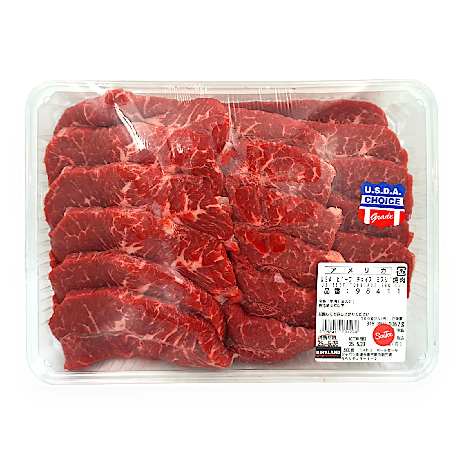 焼肉用の牛肉です。アメリカ内ビーフランク2位のチョイスランクのミスジ部位の牛肉になります。