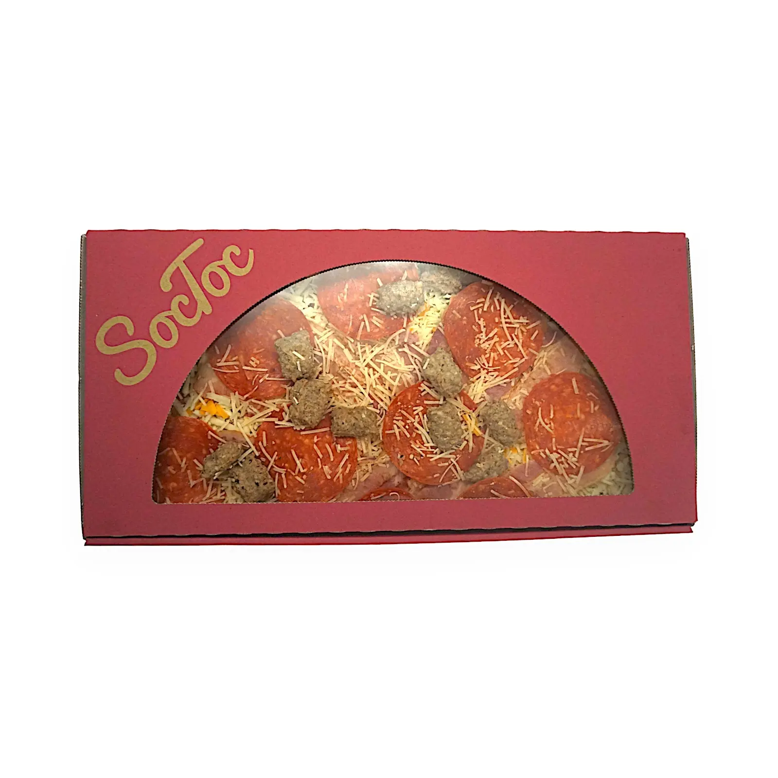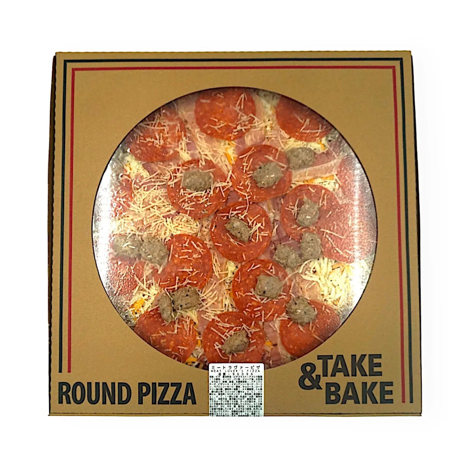 | 成分表示 | 原材料名 ピザクラスト(アメリカ製造)(小麦、イースト、パン粉、オリーブ油、大豆油、はちみつ、砂糖、食塩、大麦麦芽粉)、ナチュラルチーズ、ピザソース、イタリアンソーセージ、ベーコン、ペパロニソーセージ/香料、セルロース、ローズマリー抽出物、調味料(核酸)、pH調整剤、くん液、酸化防止剤(エリソルビン酸Na、V.C)、リン酸Na)、着色料(カロチノイド)、発色剤(亜硫酸Na)、V.C(一部に小麦・乳成分・大豆・豚肉を含む) |