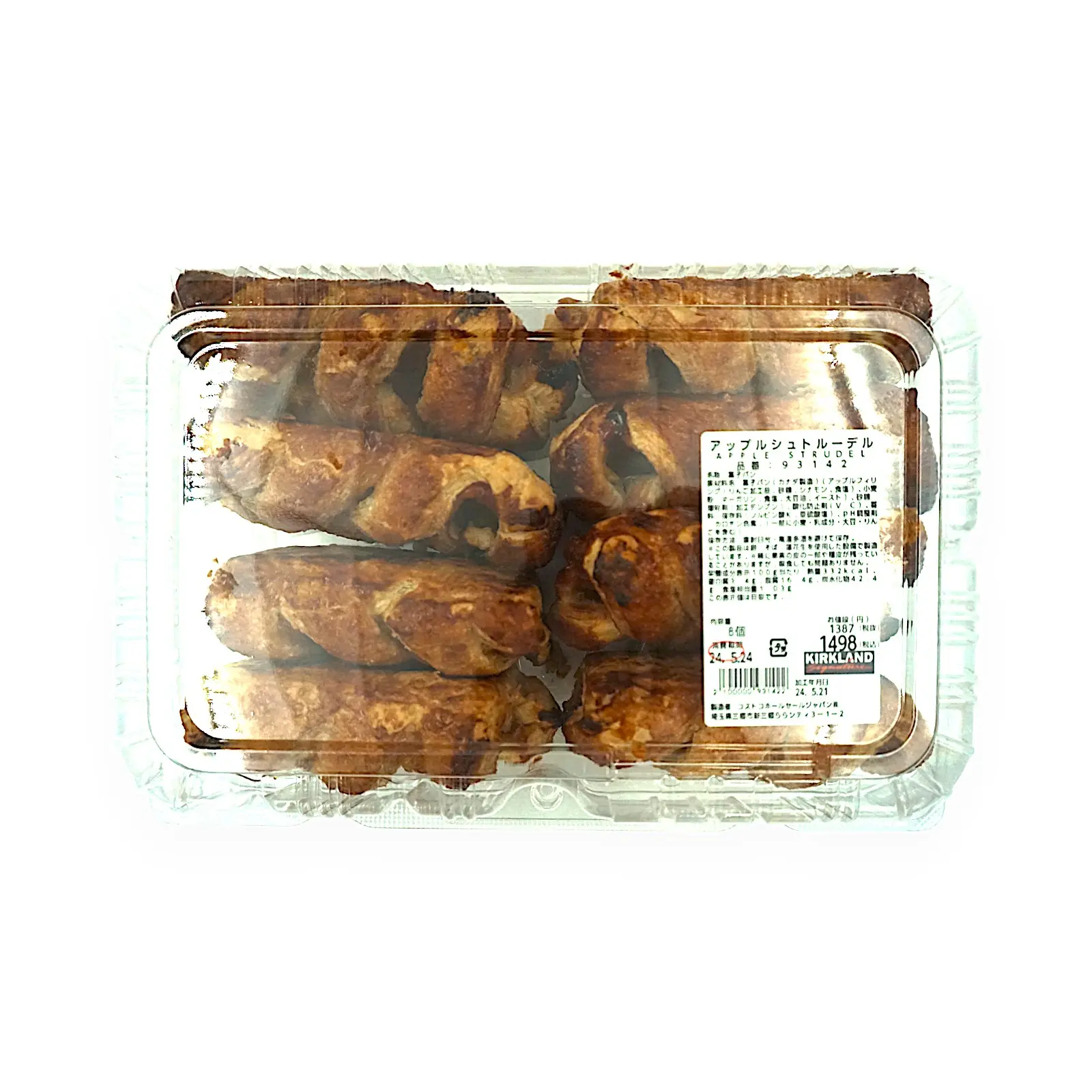 菓子パン(カナダ製造)(アップルフィリング(りんご加工品、砂糖、シナモン、食塩)、小麦粉、マーガリン、食塩、大豆油、イースト)、砂糖/増粘剤(加工デンプン)、酸化防止剤(V.C)、香料、保存料(ソルビン酸K、亜硫酸塩)、PH調整剤、カロチン色素、(一部に小麦・乳成分・大豆・りんごを含む)