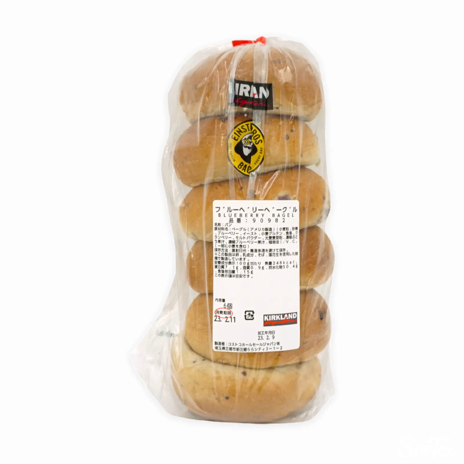 ベーグル(アメリカ製造)(小麦粉、砂糖:ブルーベリー、イースト、小麦グルテン、食塩・クランベリー、モルトパウダー、大麦麦芽粉、濃縮ぶどう果汁、濃縮ブルーベリー果汁、植物油)/V.C、(一部に小麦を含む)