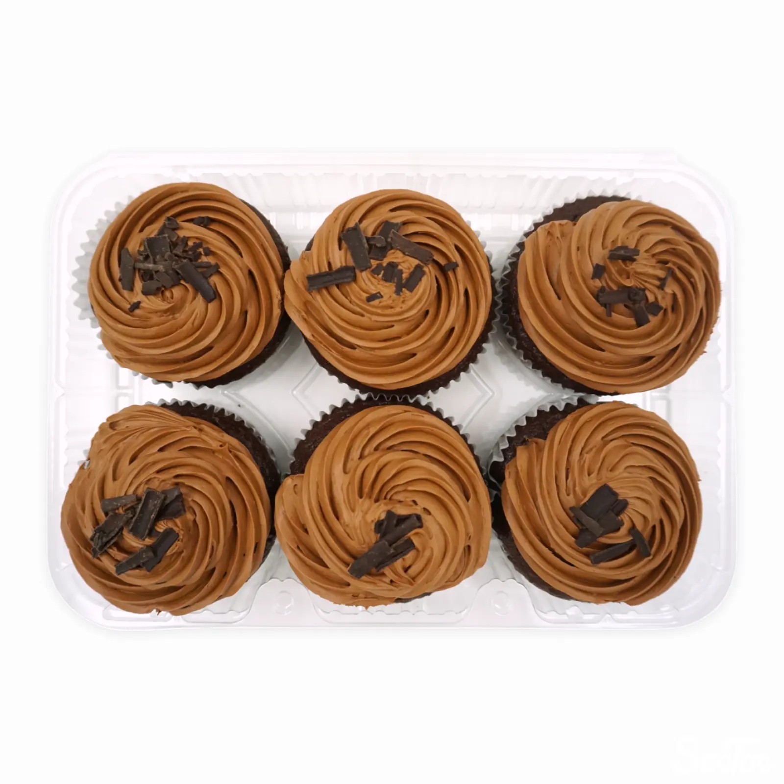 ベーカリーコーナーにあるチョコレートのカップケーキ6個入りのパックです。チョコレートスポンジの上にチョコレートクリームが絞られ、ビターチョコレートのチップが載せてあります。チョコレートづくしのケーキですが、あまり甘さやカカオの風味は強調されておらず、食べやすいケーキに仕上がっています。